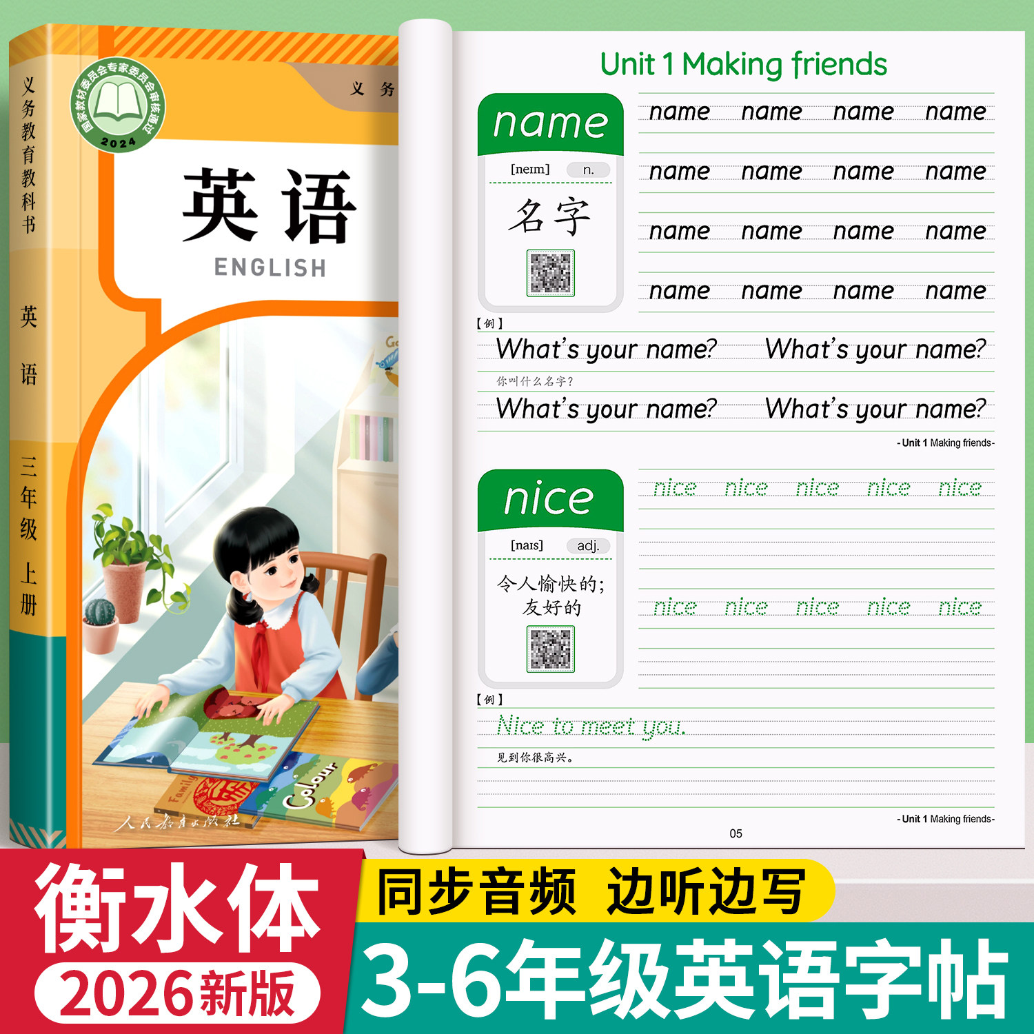 2026新版三年级四五六衡水体英语字帖上册下册人教版同步练字帖小学生专用26个英文字母书写单词钢笔六年级每日一练二升三描红本册