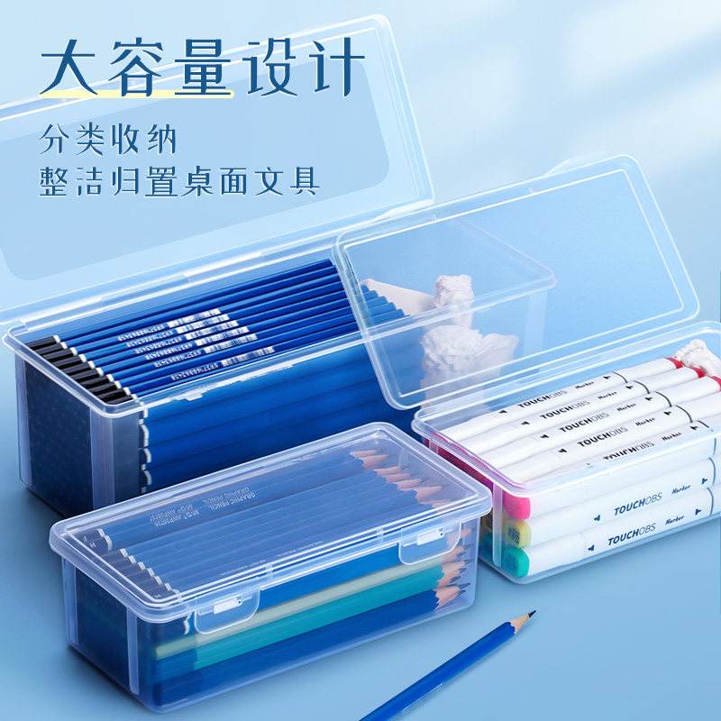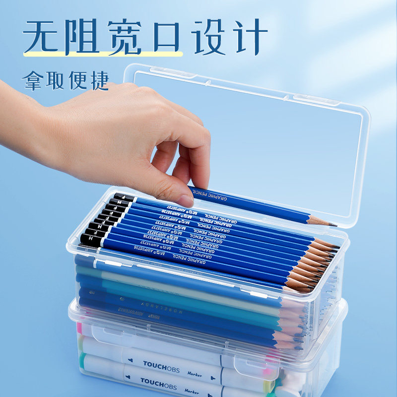 超大铅笔收纳盒桌面文具素描透明笔盒大容量彩铅蜡笔画笔笔筒水彩笔盒子铅笔袋简约收纳炭笔用杂物箱工具套装