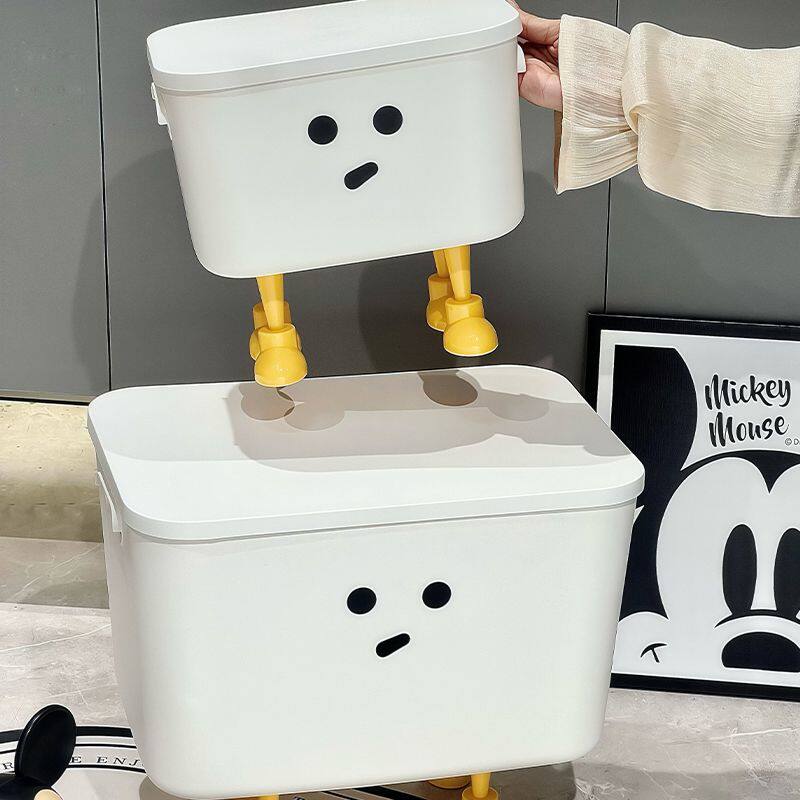 桌面收纳盒奶油风客厅零食玩具化妆品置物篮厨房杂物带盖储物箱子
