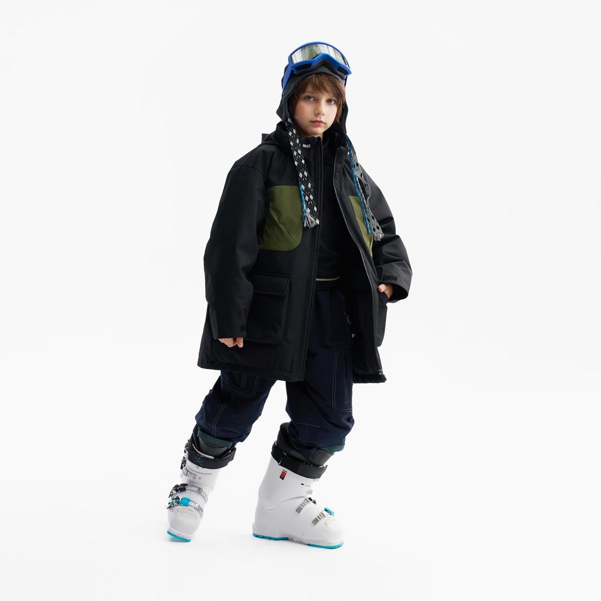 贵人鸟男童加绒裤子儿童加厚一体绒长裤2025新款冬季工装裤冲锋裤