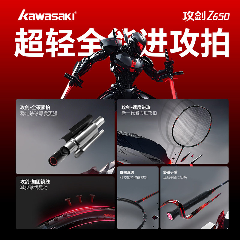 川崎KAWASAKI羽毛球拍攻剑Z650全碳素专业全能进攻单拍比赛级弓箭