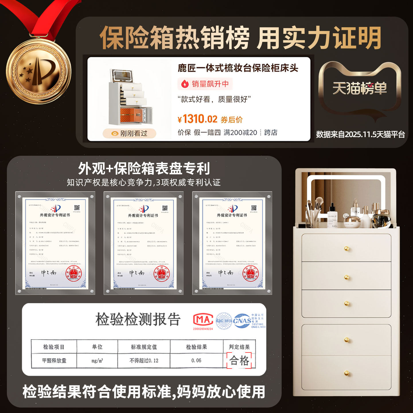 鹿匠智能梳妆台带保险箱一体式48cm宽隐形指纹防盗保险柜家用化妆镜带锁小户型卧室衣帽间搬不走化妆桌床头柜