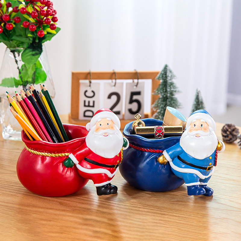 创意大容量笔筒办公室个性学生桌面装饰摆件圣诞老人笔桶儿童礼物