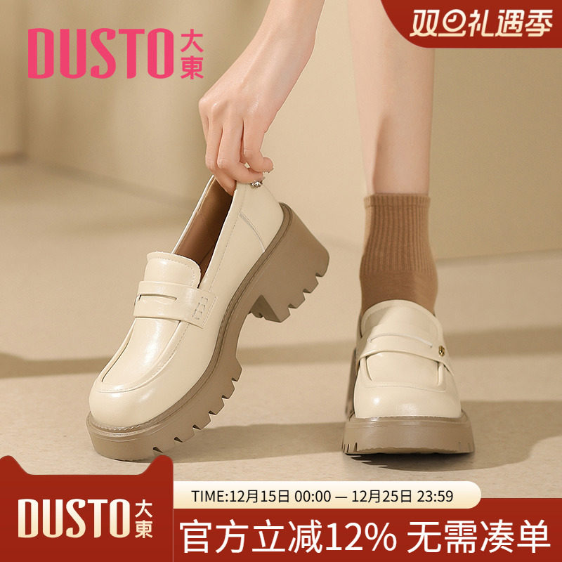 大东时尚乐福鞋女2025秋季新款学院风高跟粗跟小皮鞋圆头女鞋0665