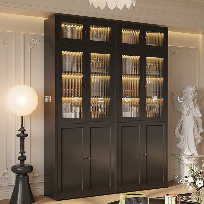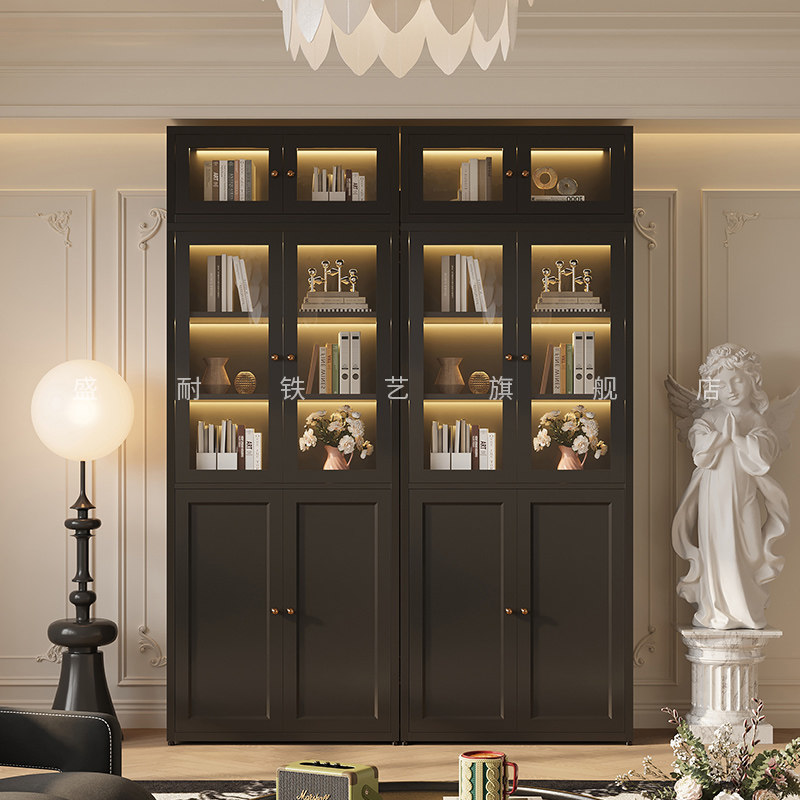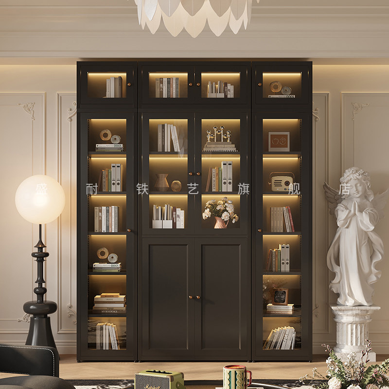 复古风靠墙书柜铁艺家用客厅落地置物储物柜卧室储物柜展示柜书厨