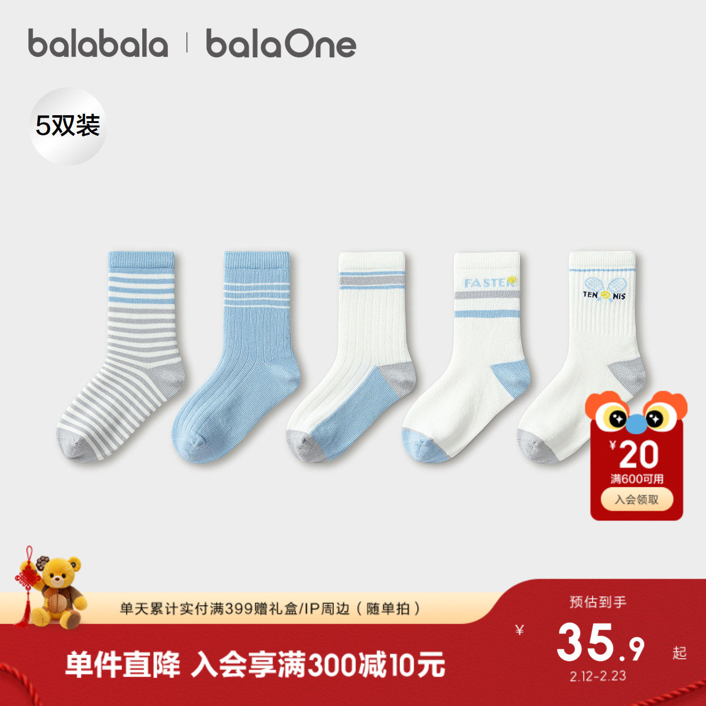 巴拉巴拉儿童袜子春秋男童棉袜中筒袜撞色舒适柔弹亲肤提花五双装