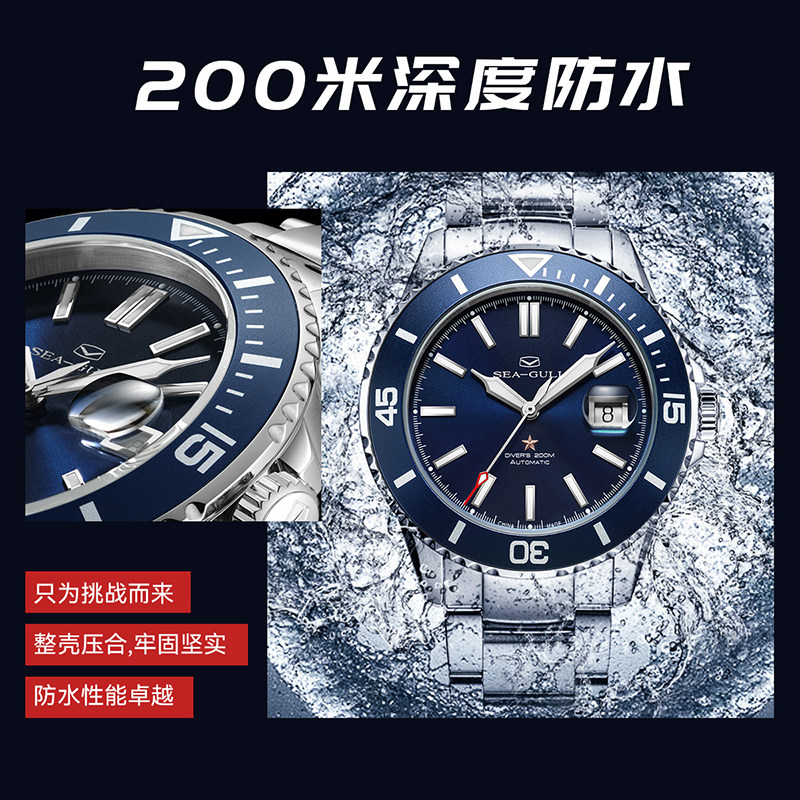 海鸥表新男士款防水机械表男表礼物海洋系列国产腕表潜水手表1523