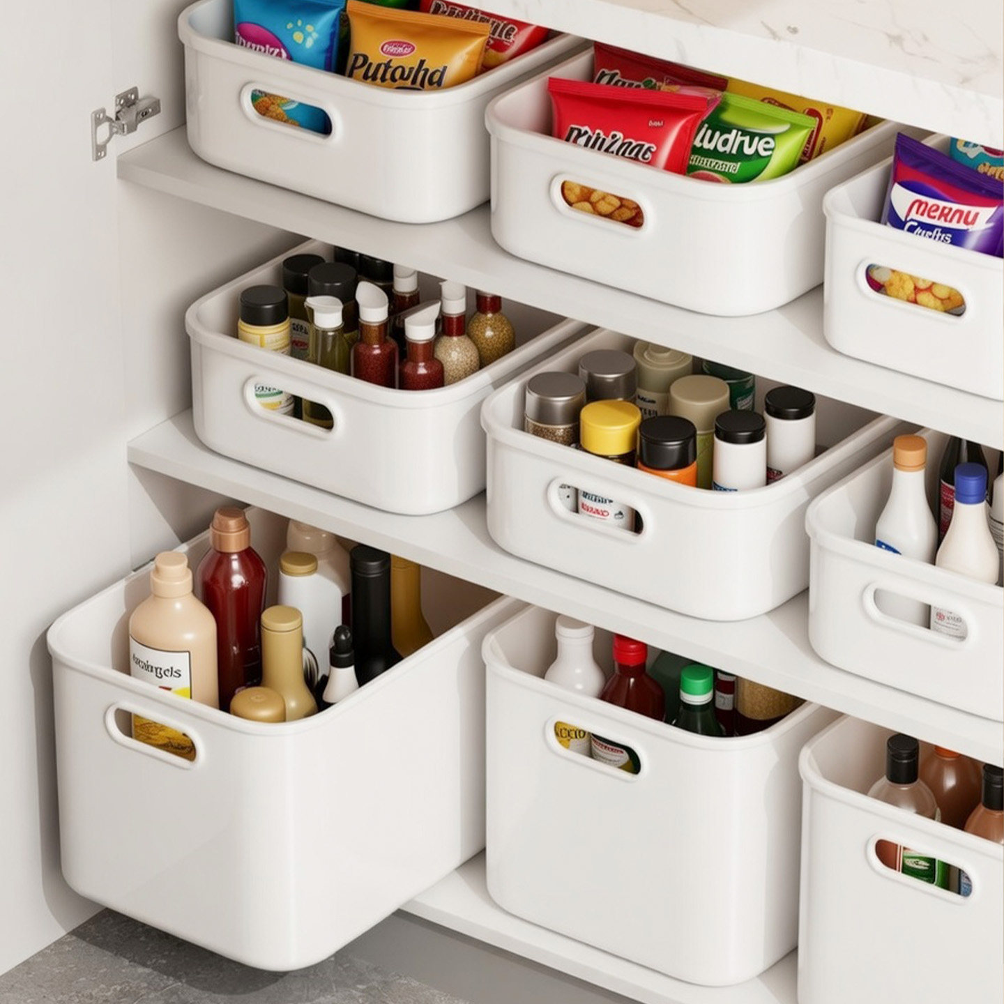 桌面收纳盒长方形家用化妆品零食厨房抽屉储物整理盒杂物置物筐子