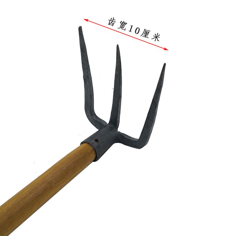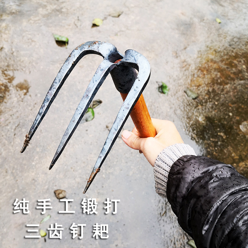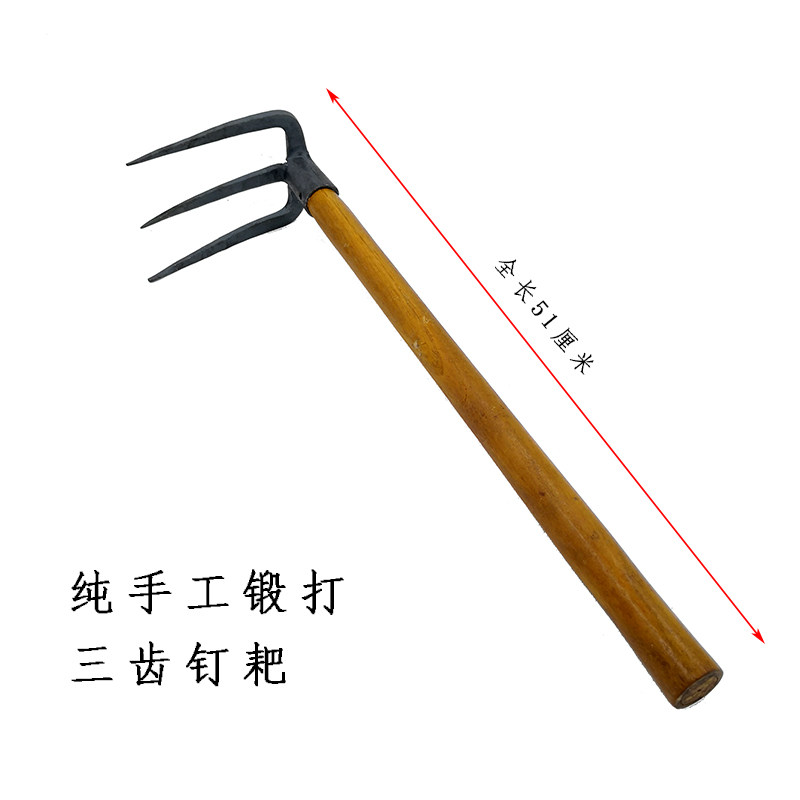 园艺工具耙子木柄三齿钉耙纯手工锻打种菜锄头挖洞打眼户外种花