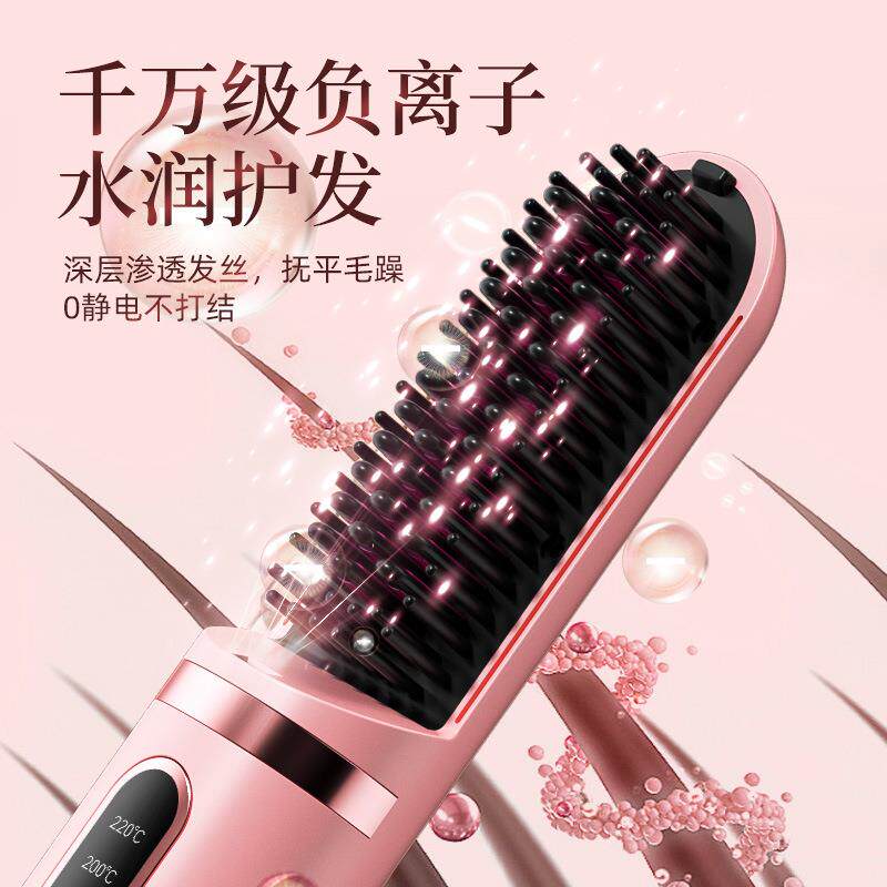 无线直发梳家用不伤发负离子梳子便携直卷两用卷发棒多功能直发器