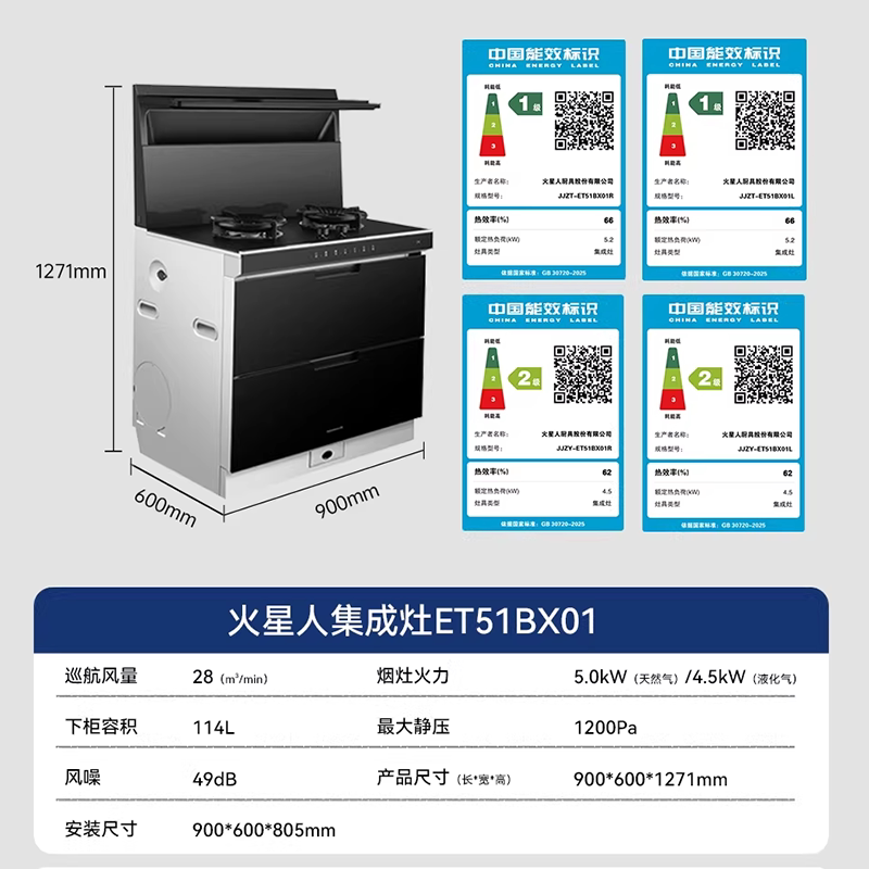 [王安宇推荐新品]火星人ET51BX听月系列一体式厨房集成灶消毒柜