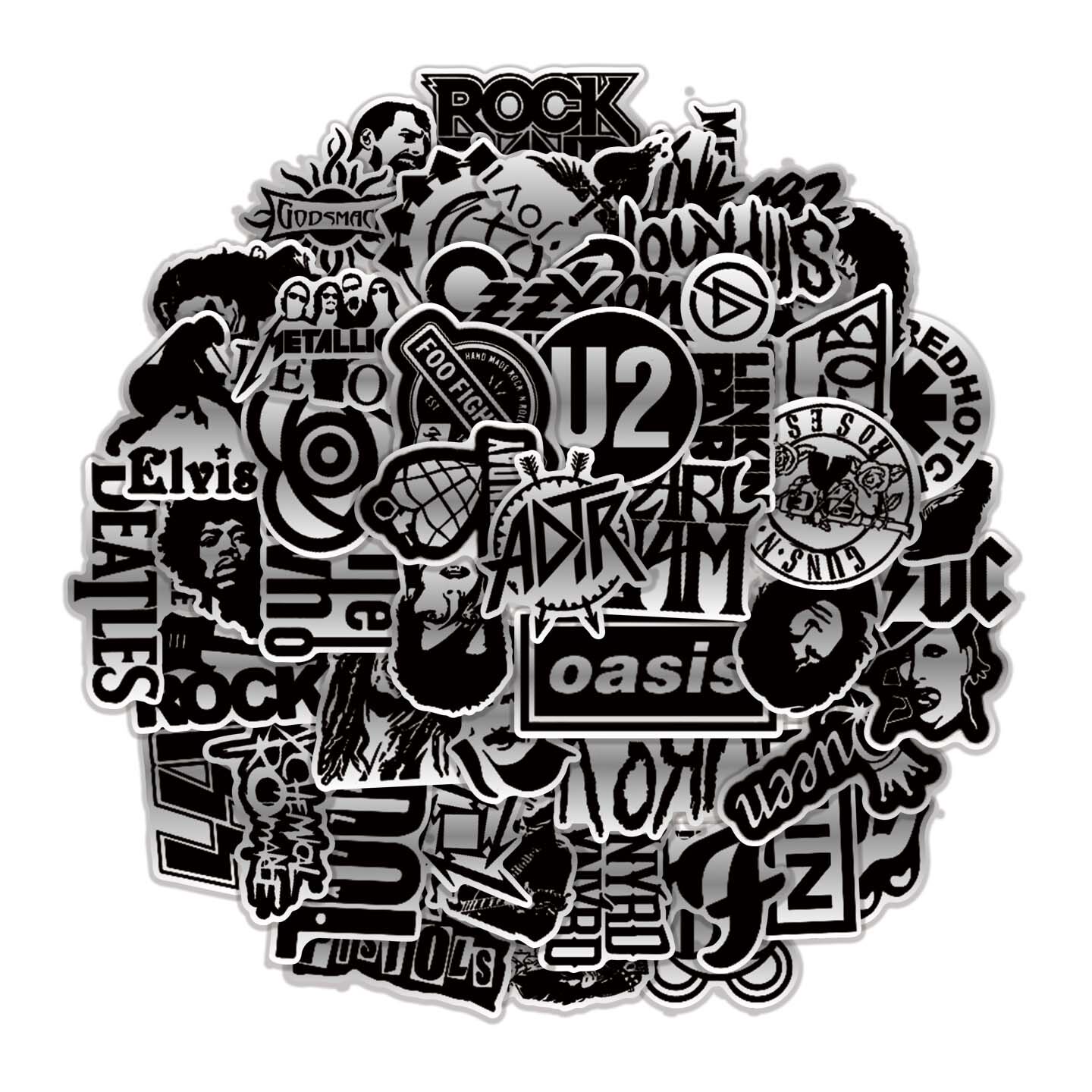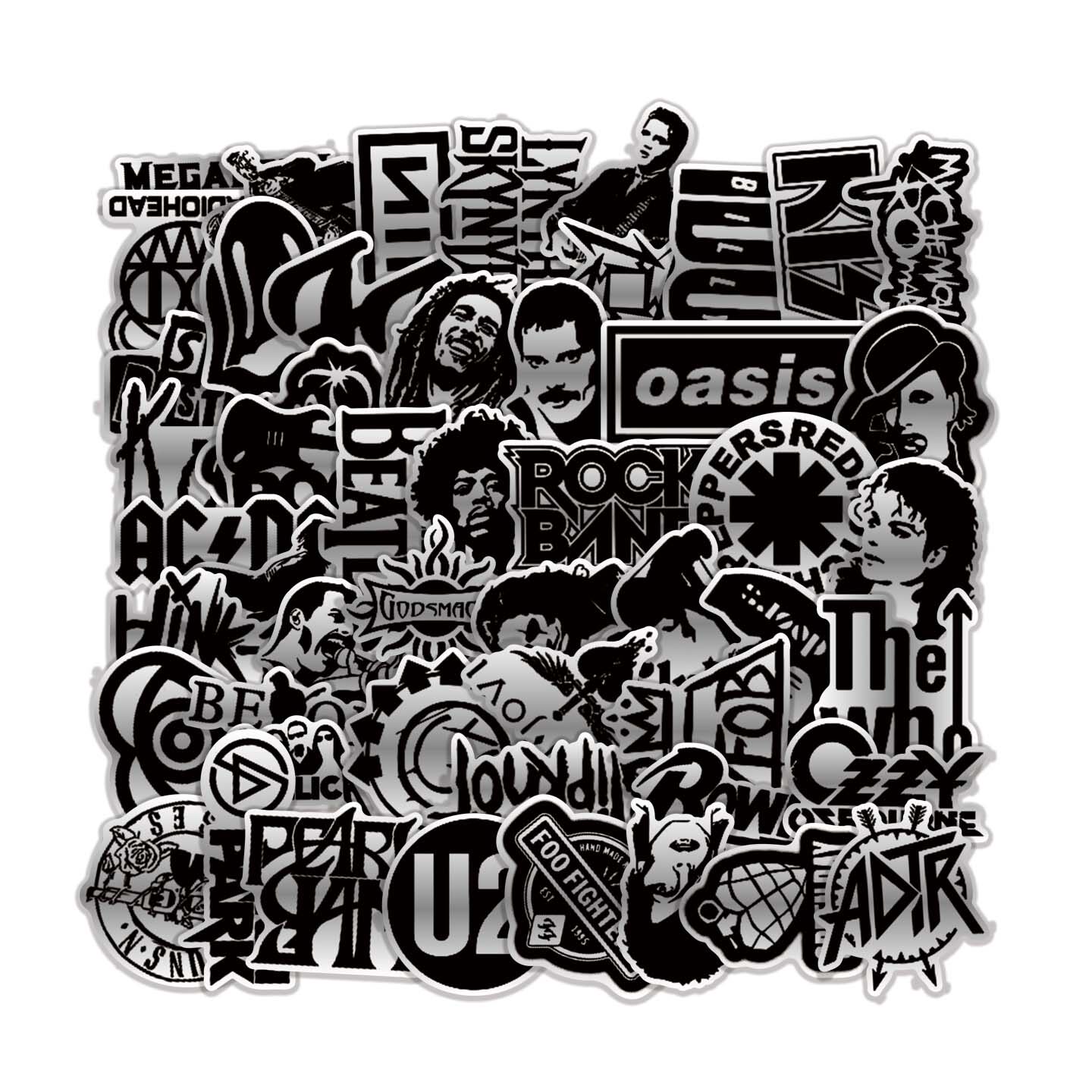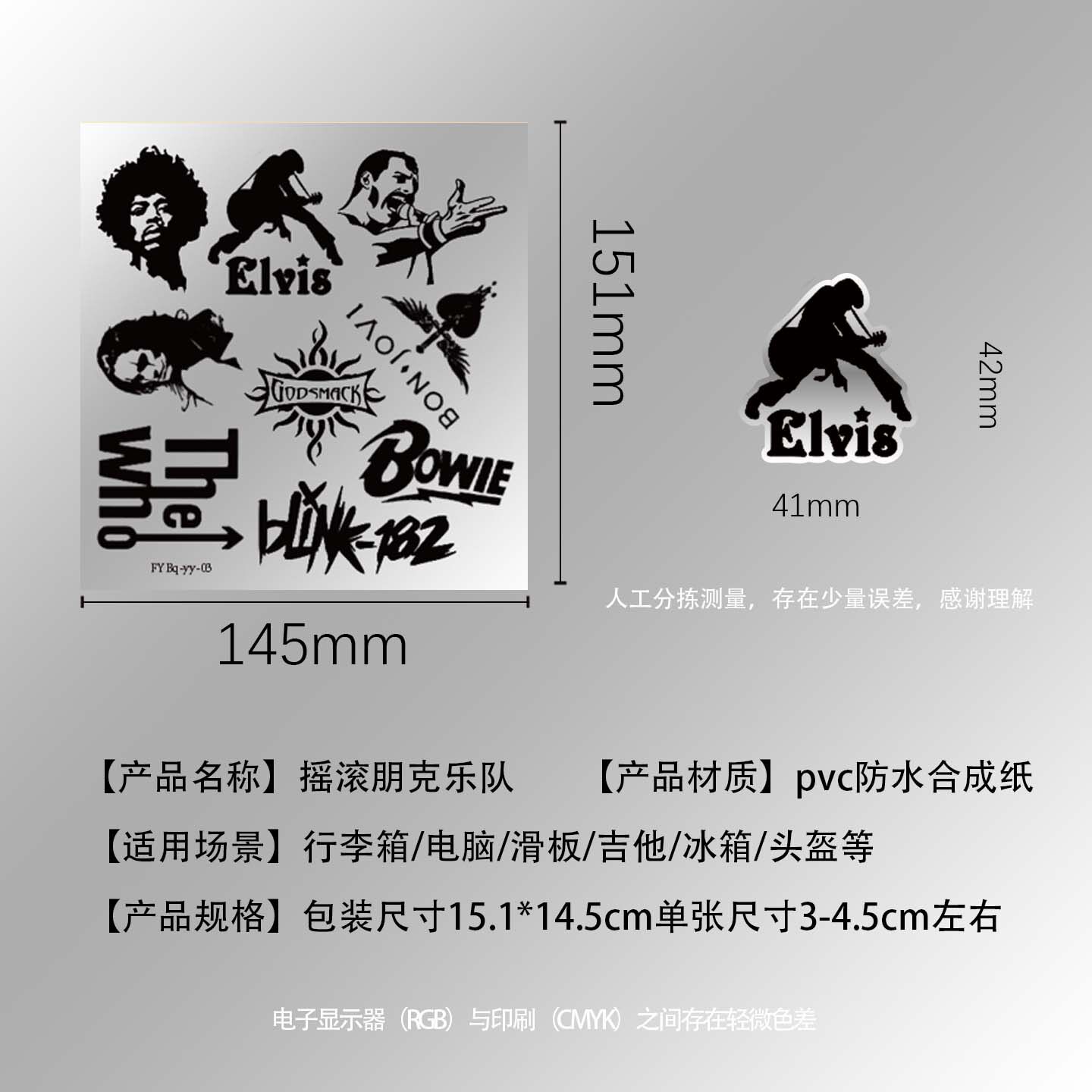 摇滚朋克乐队仿真金属拉丝银贴纸套装音乐主题装饰贴个性潮流笔记本平板电动车滑板头盔吉他水杯防水环保贴画