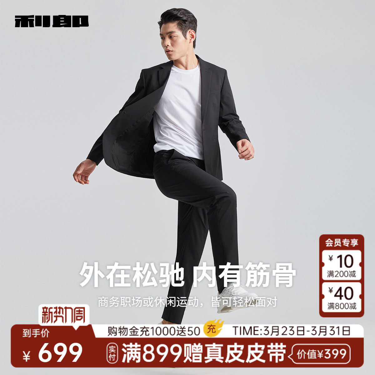 [弹力运动西服]利郎官方西装套装男黑色正装春秋款男装西装套西
