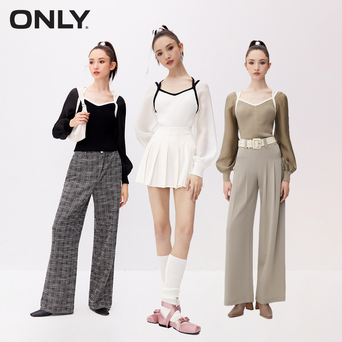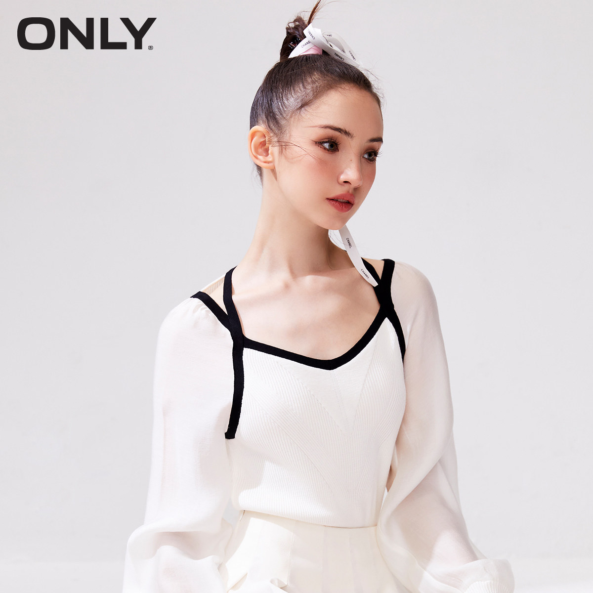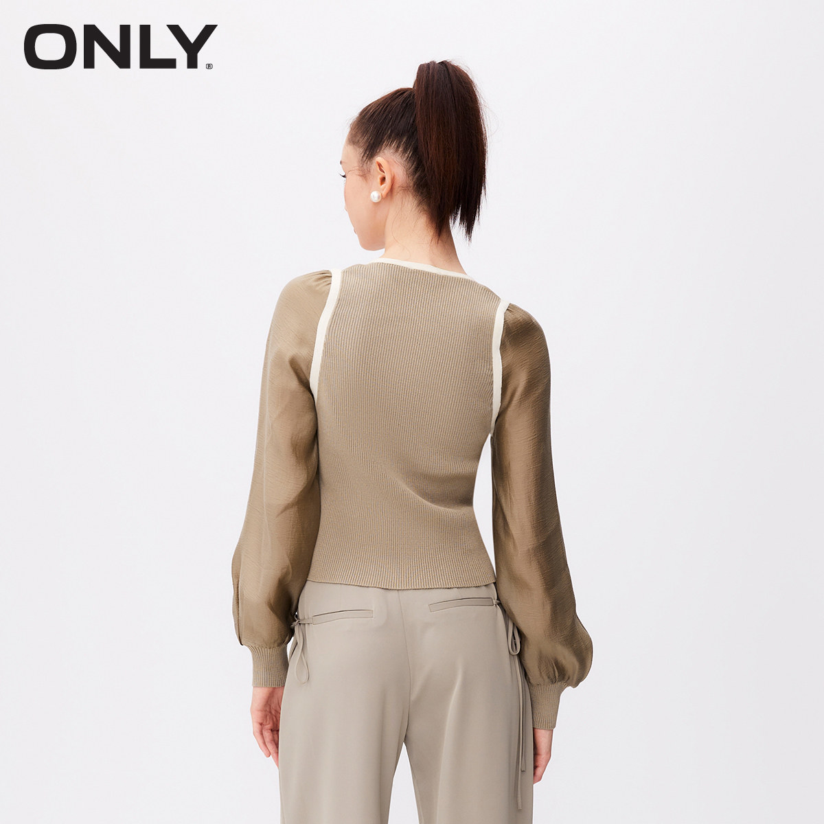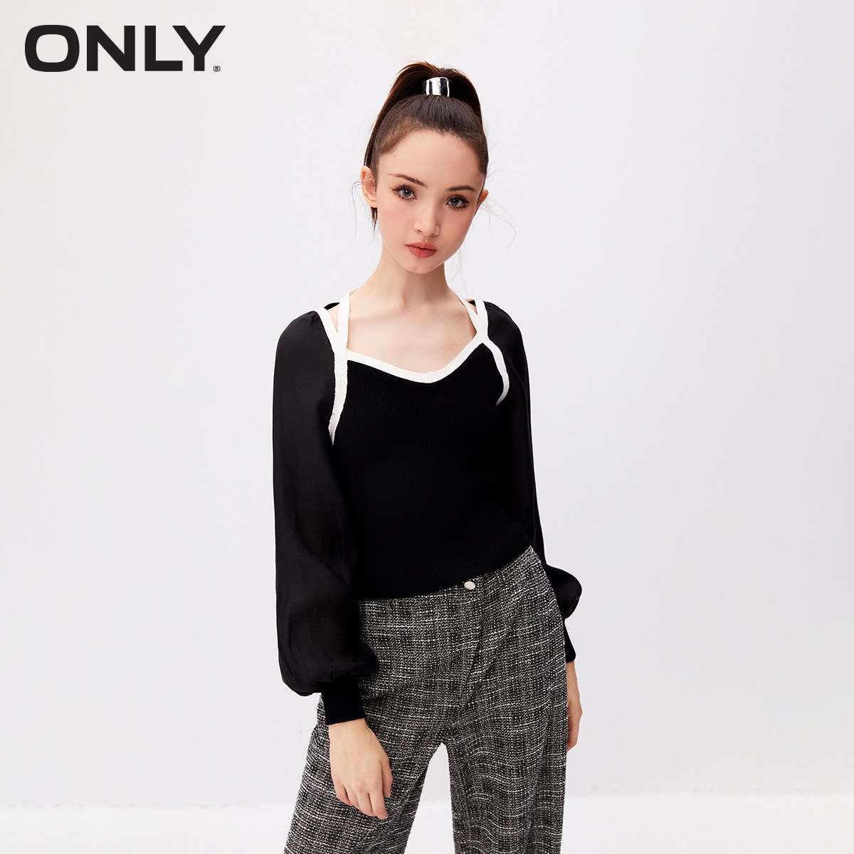 【ONLY奥莱】春夏新款通勤风百搭法式纯色方领短款雪纺衫女