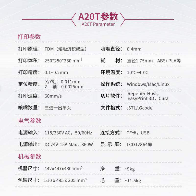 Geeetech A20T 3D打印机高精度准工业级快速安装3混色3d打印机diy