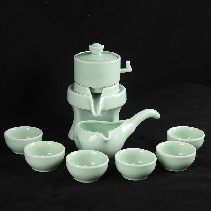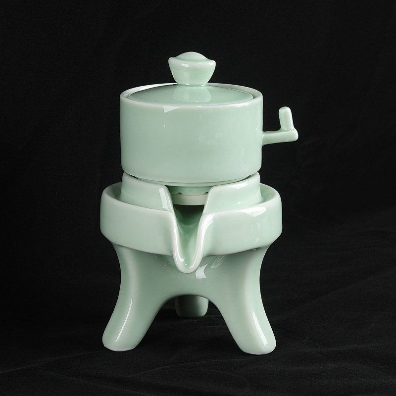 陶瓷功夫茶具套装家用泡茶壶茶杯懒人石磨茶具套装防烫旋转