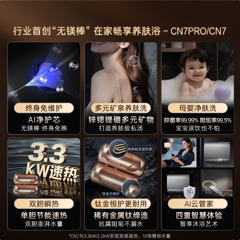 [换新补贴]卡萨帝电热水器官方家用双胆扁桶变频富锶无镁棒CN7pro