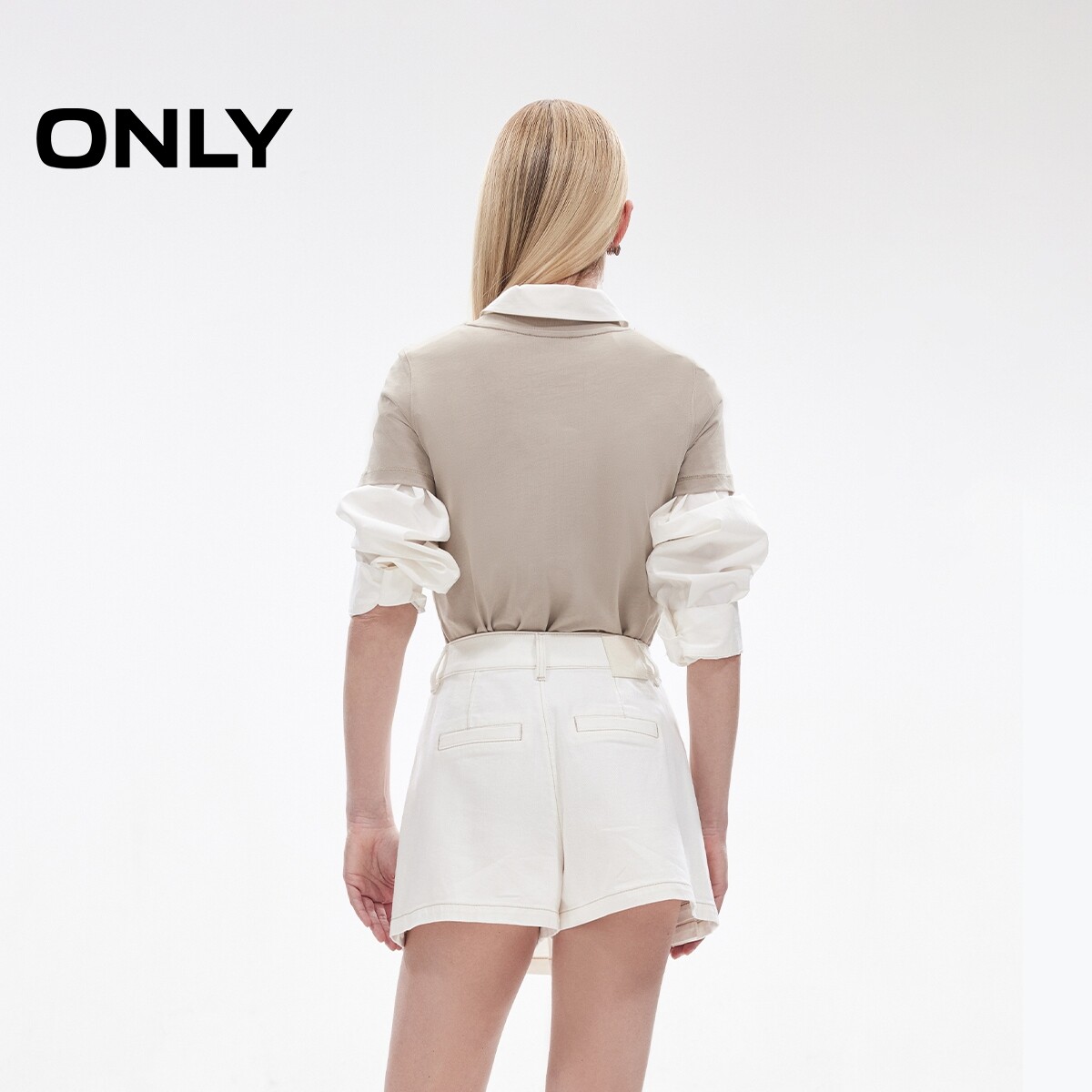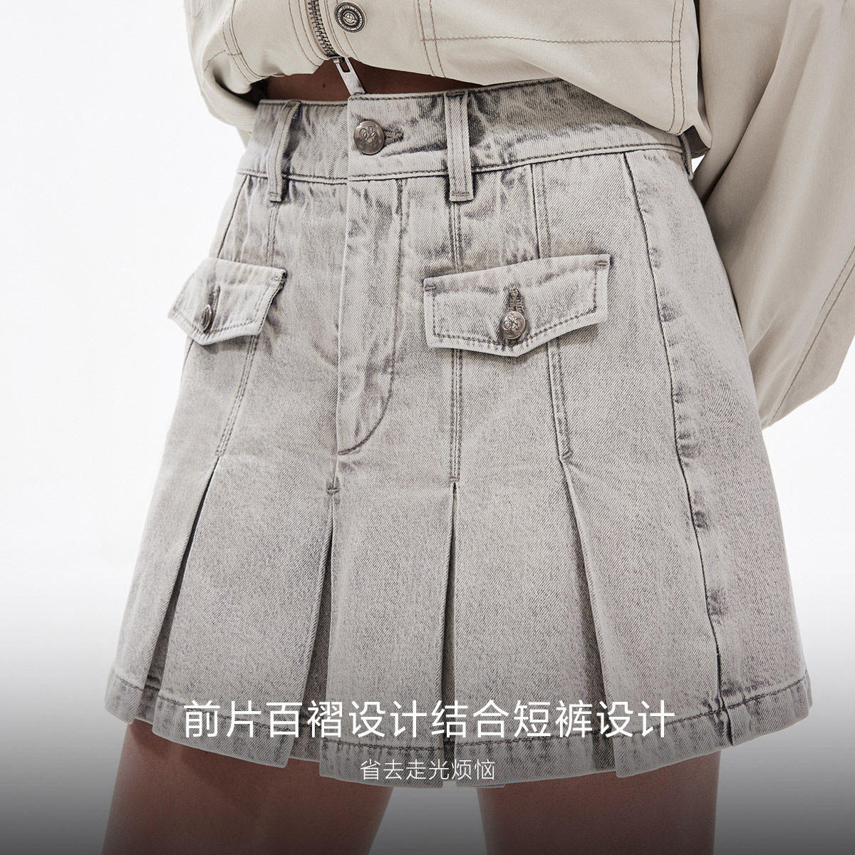 【ONLY奥莱】春季甜美减龄复古水洗高腰A字百褶裙裤短裤牛仔裤女