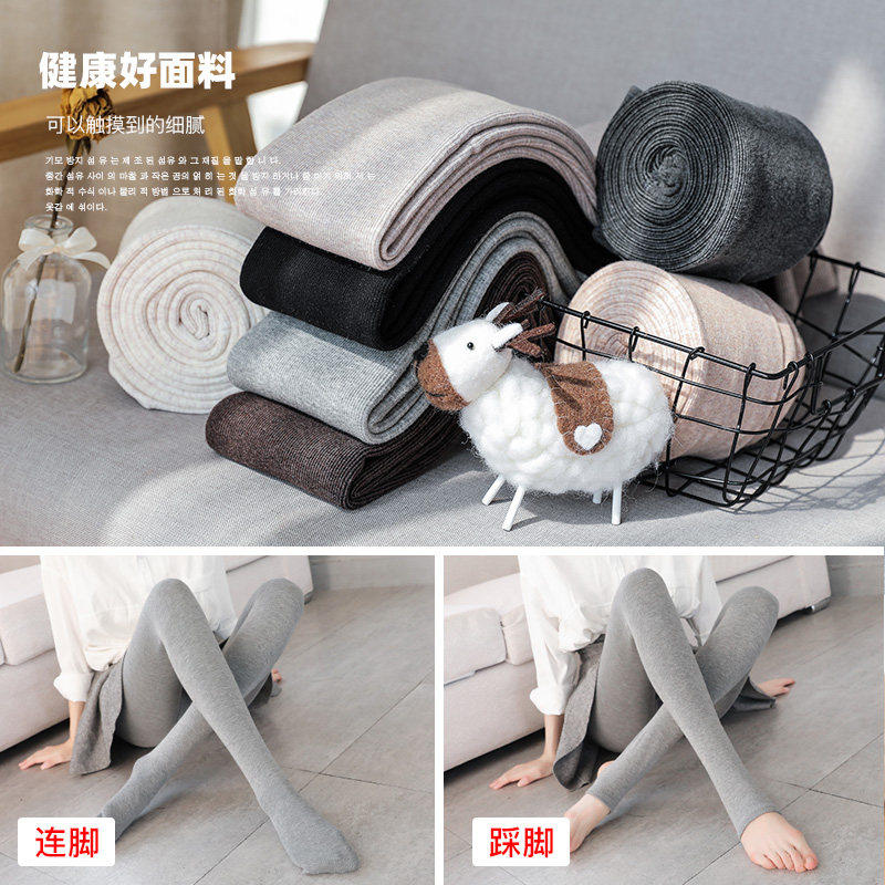菇娘家热压连裤袜高支棉羊毛打底裤女灰色大码秋冬黑色保暖瘦腿袜