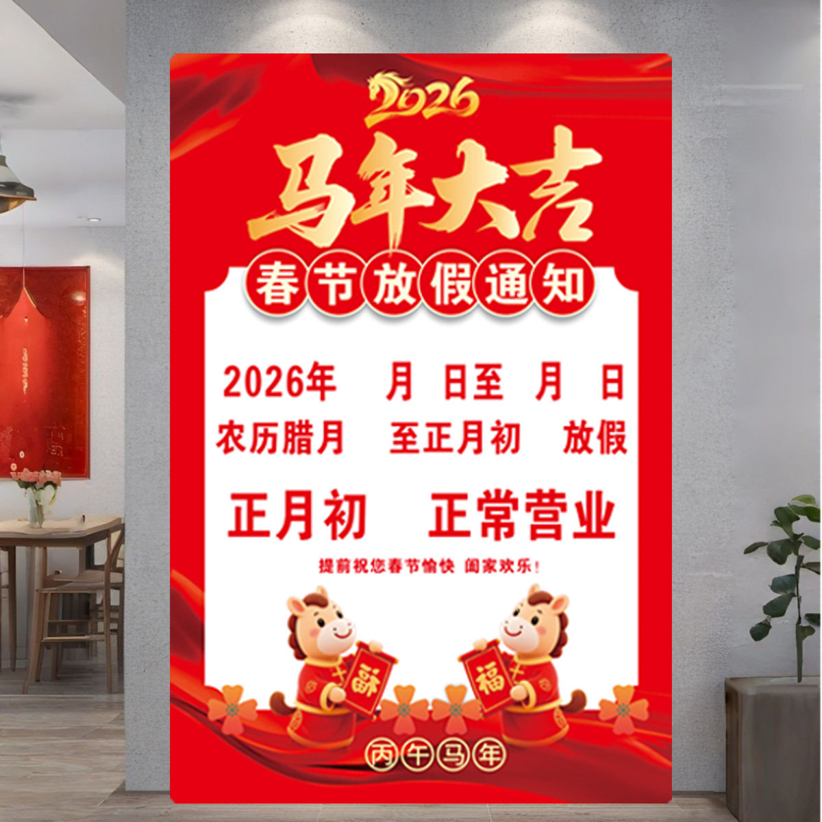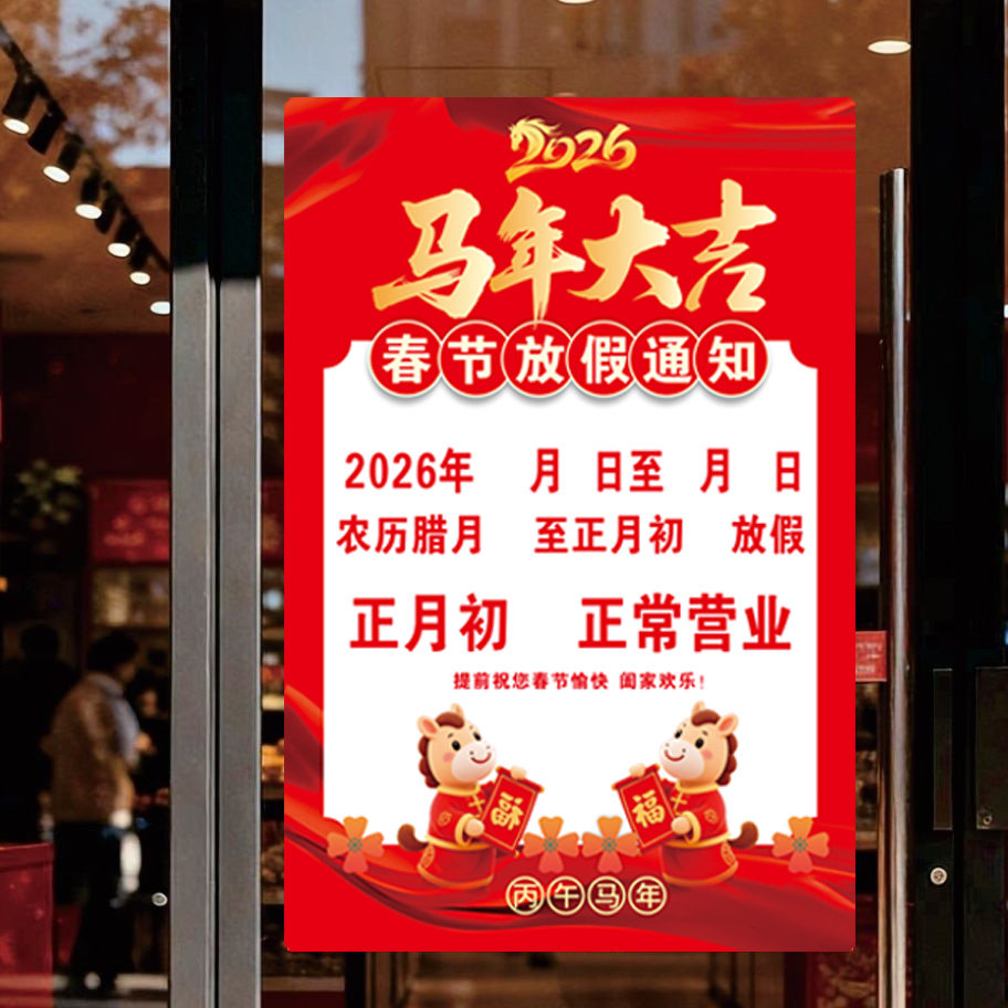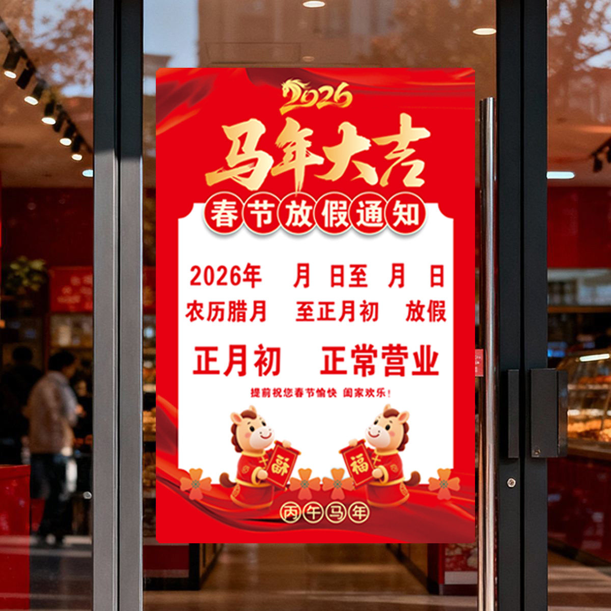 2026马年春节放假通知海报新年公司单位店铺饭店餐馆公告贴纸贴画