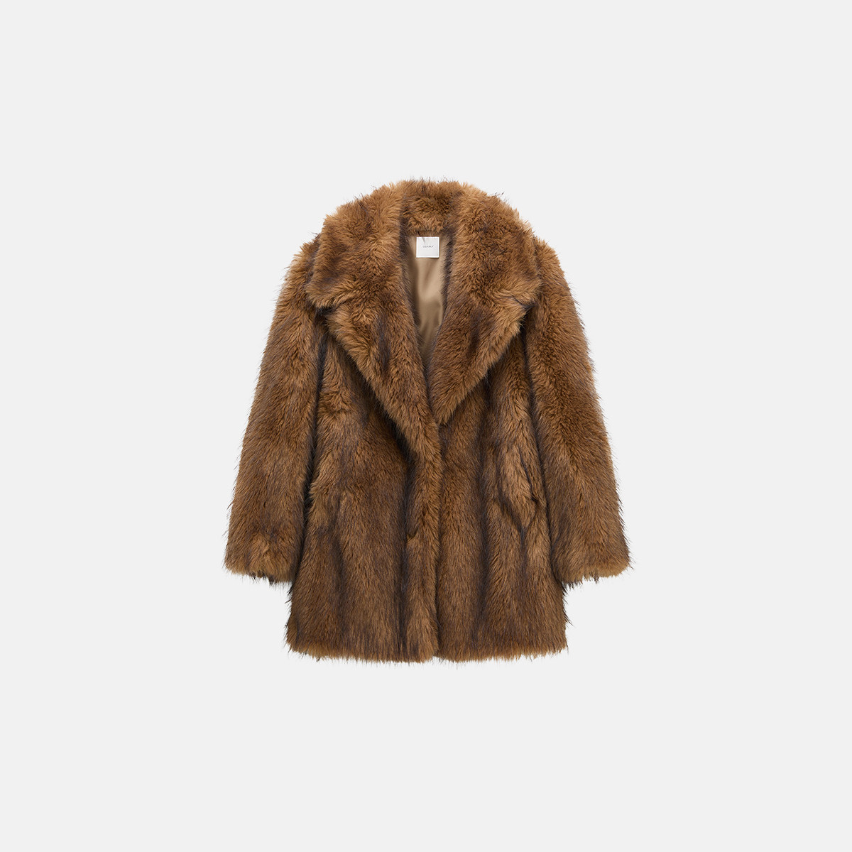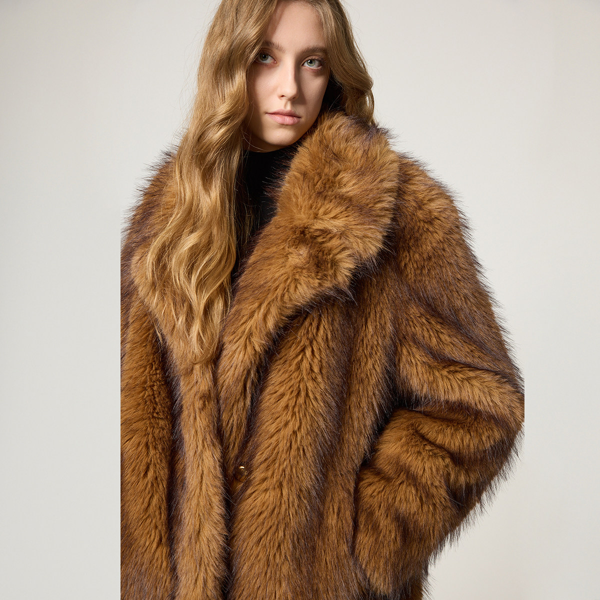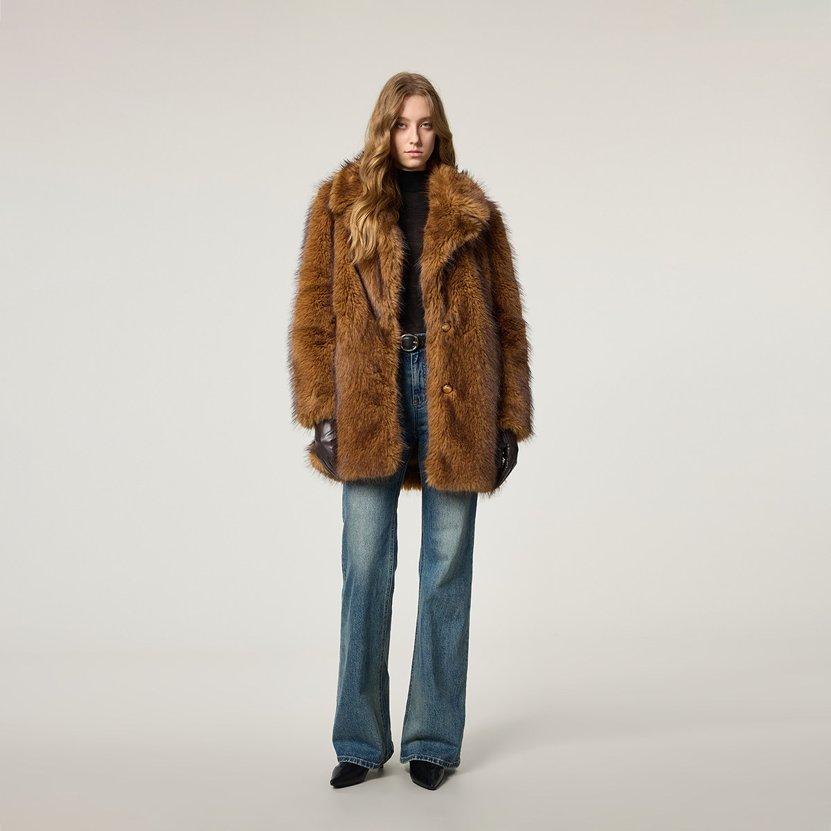 【新品】奚梦瑶联名系列欧时力 翻领廓形仿皮草外套中长款2026春