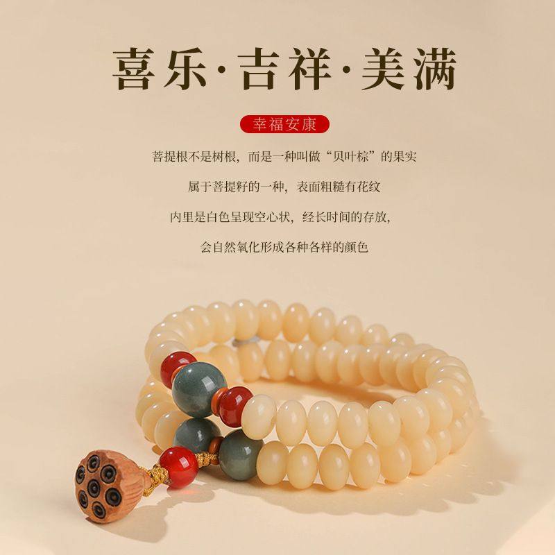 菩提手串念珠文玩盘玩手链女级感白玉盘珠精选手工好运吉祥醒狮
