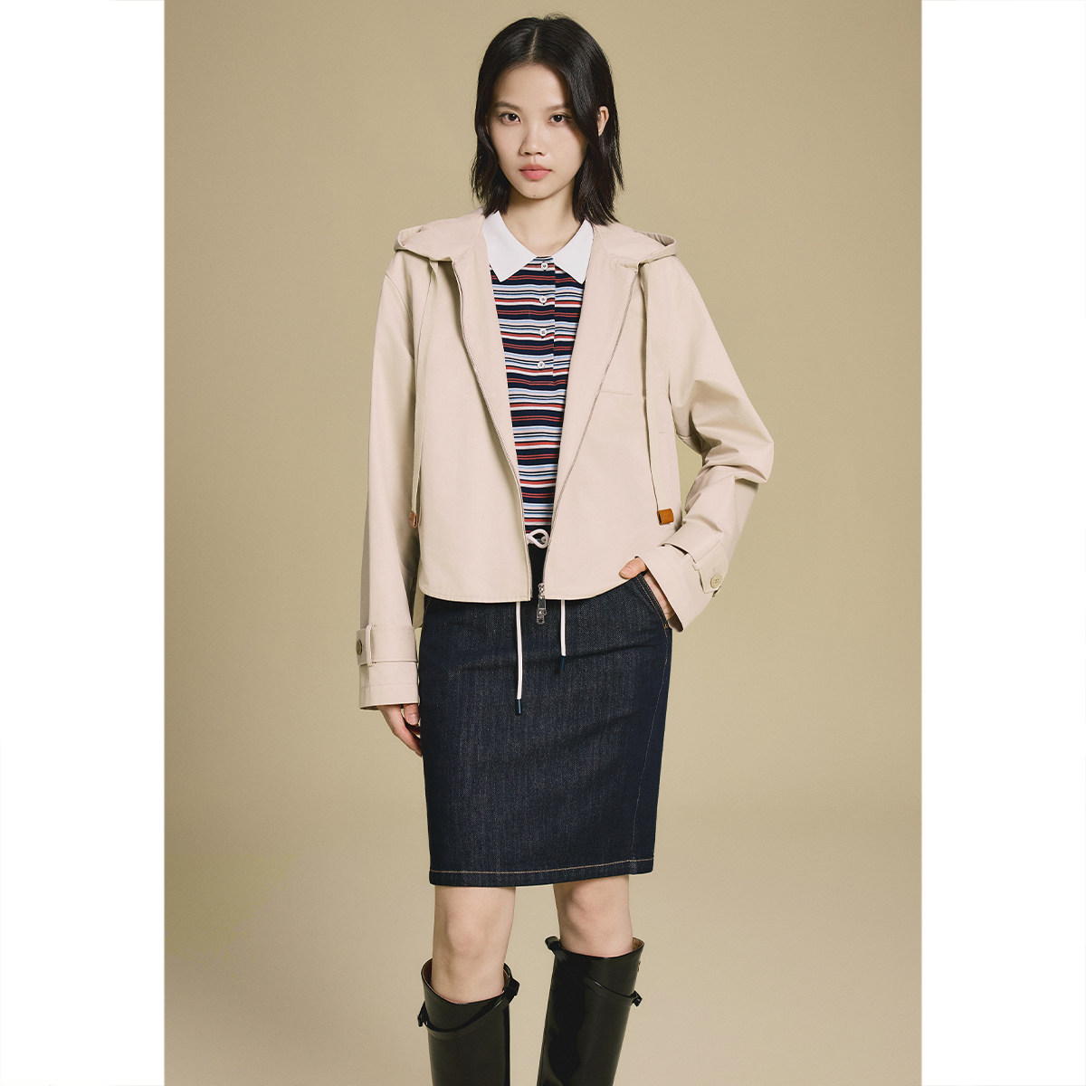 PSALTER诗篇斜纹风衣面料连帽抽绳双层下摆短外套2025秋款