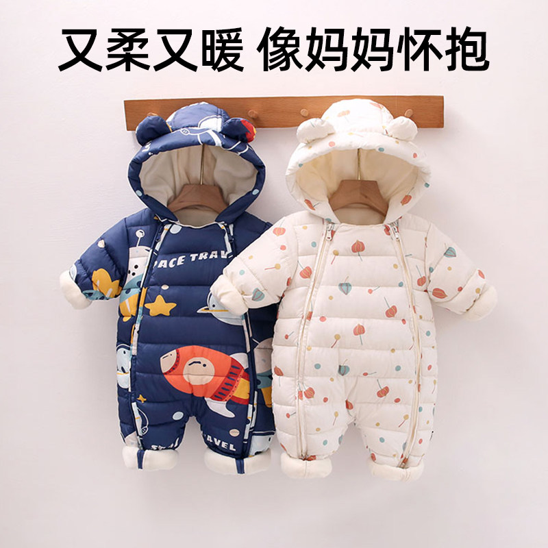 贝肽斯婴儿衣服宝宝夹棉连体衣冬季加绒加厚哈衣保暖外出棉服冬装