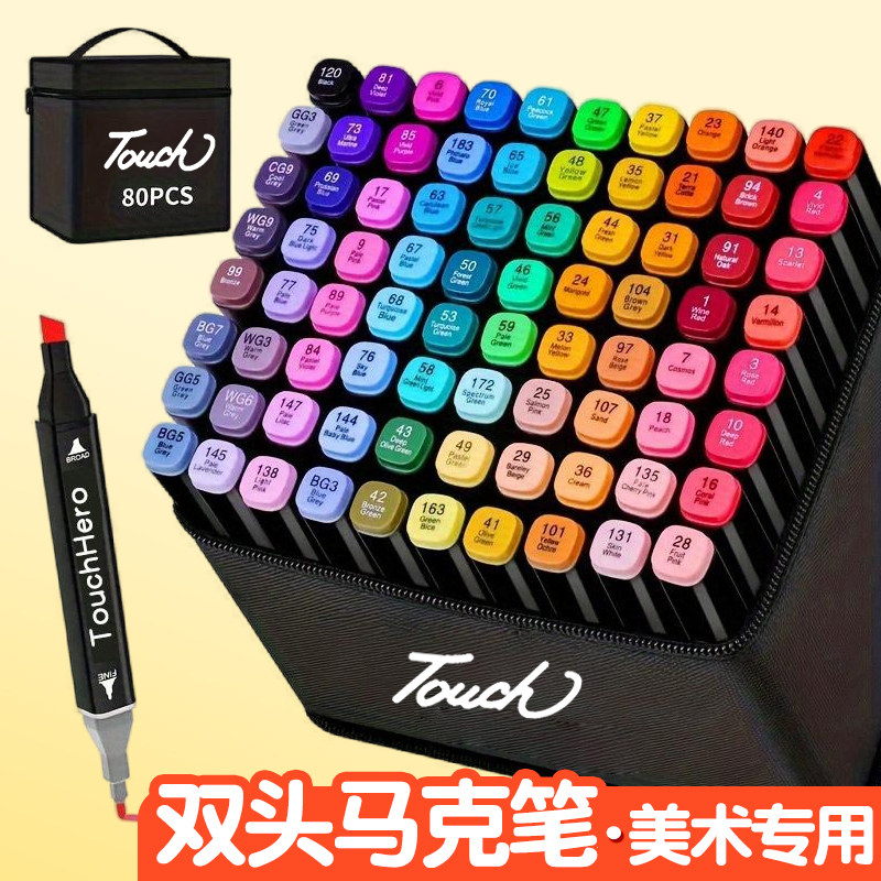 双头马克笔小学生美术专用油性无毒水彩笔动漫设计touch绘画套装幼儿园不透色儿童手绘涂鸦彩笔画画批发