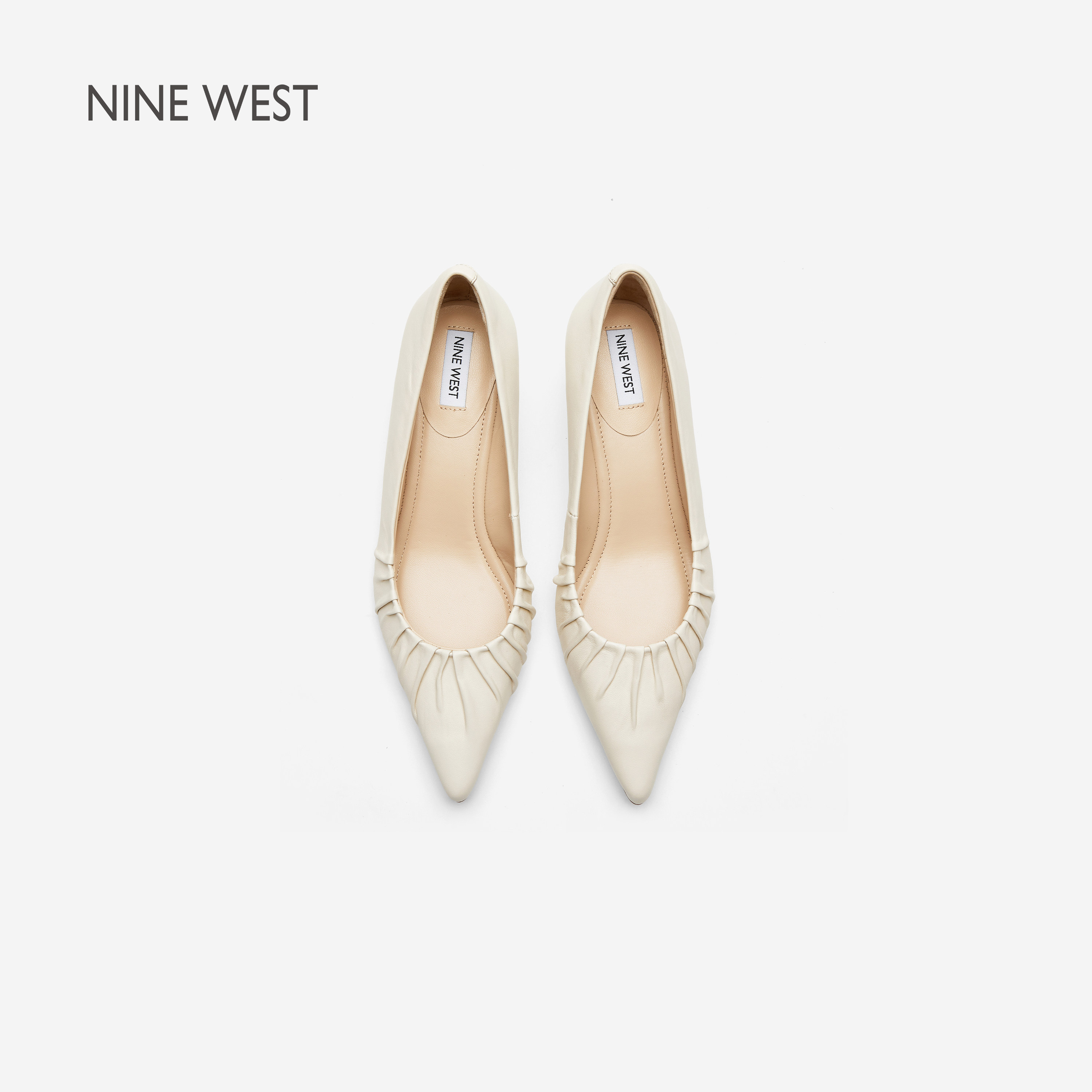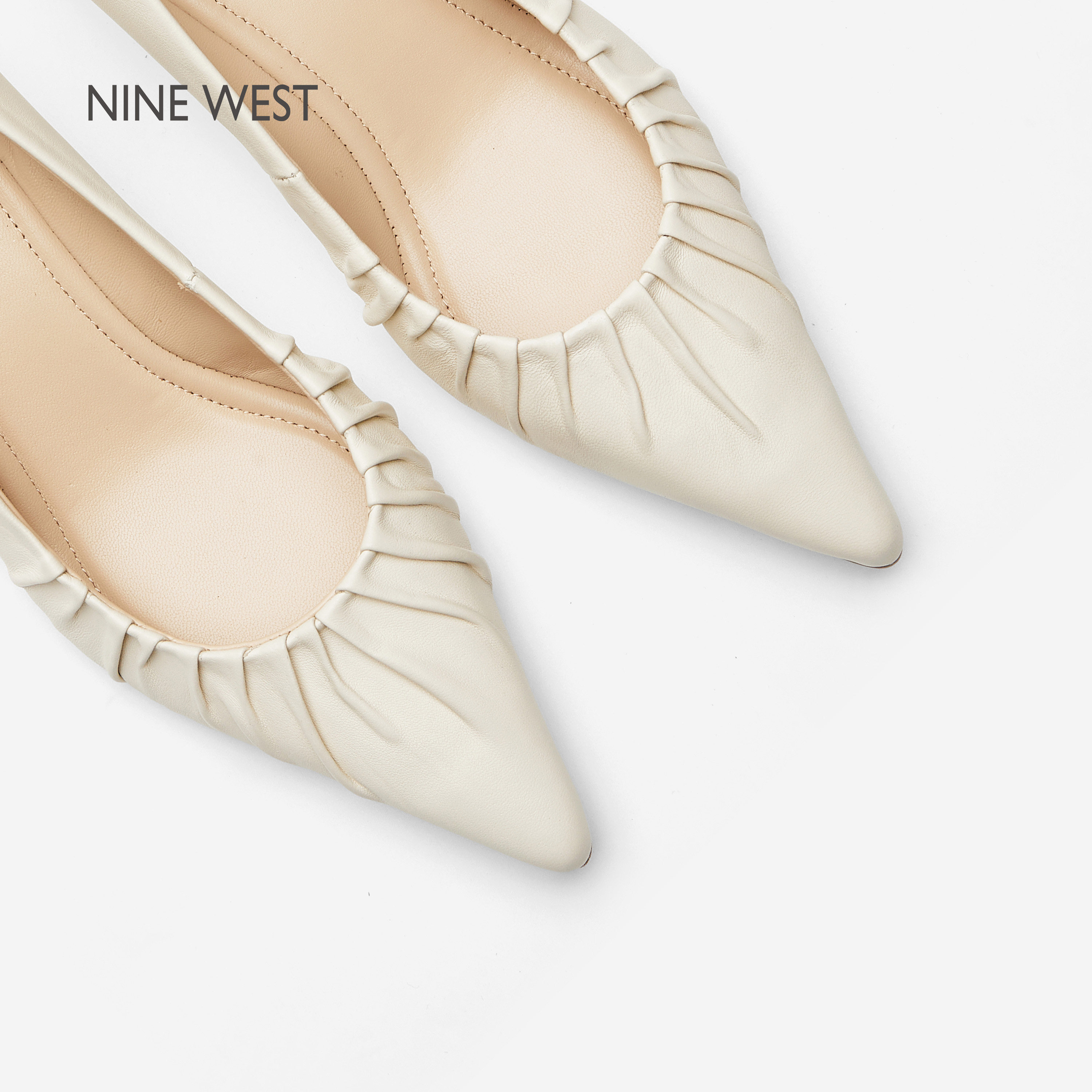 Nine West/玖熙云端褶扇尖头细跟浅口单鞋女2026春新款百搭高跟鞋
