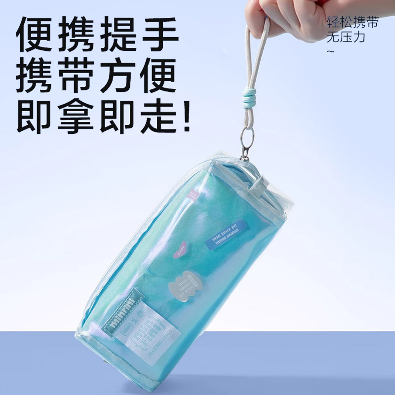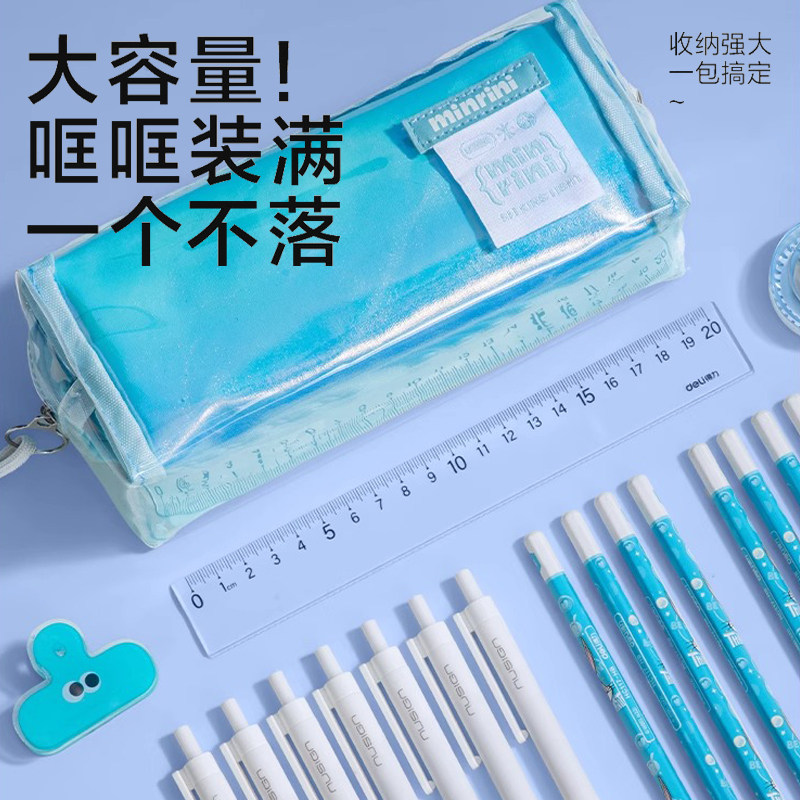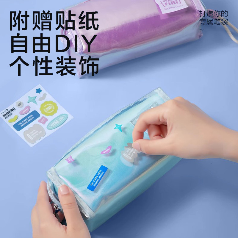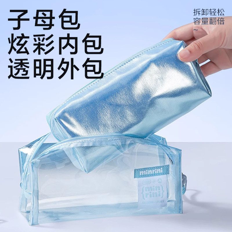 得力大容量笔袋学生文具收纳袋镭射炫彩子母包笔袋初中生高中生用中考高考透明文具袋高颜值ins风化妆包BC395