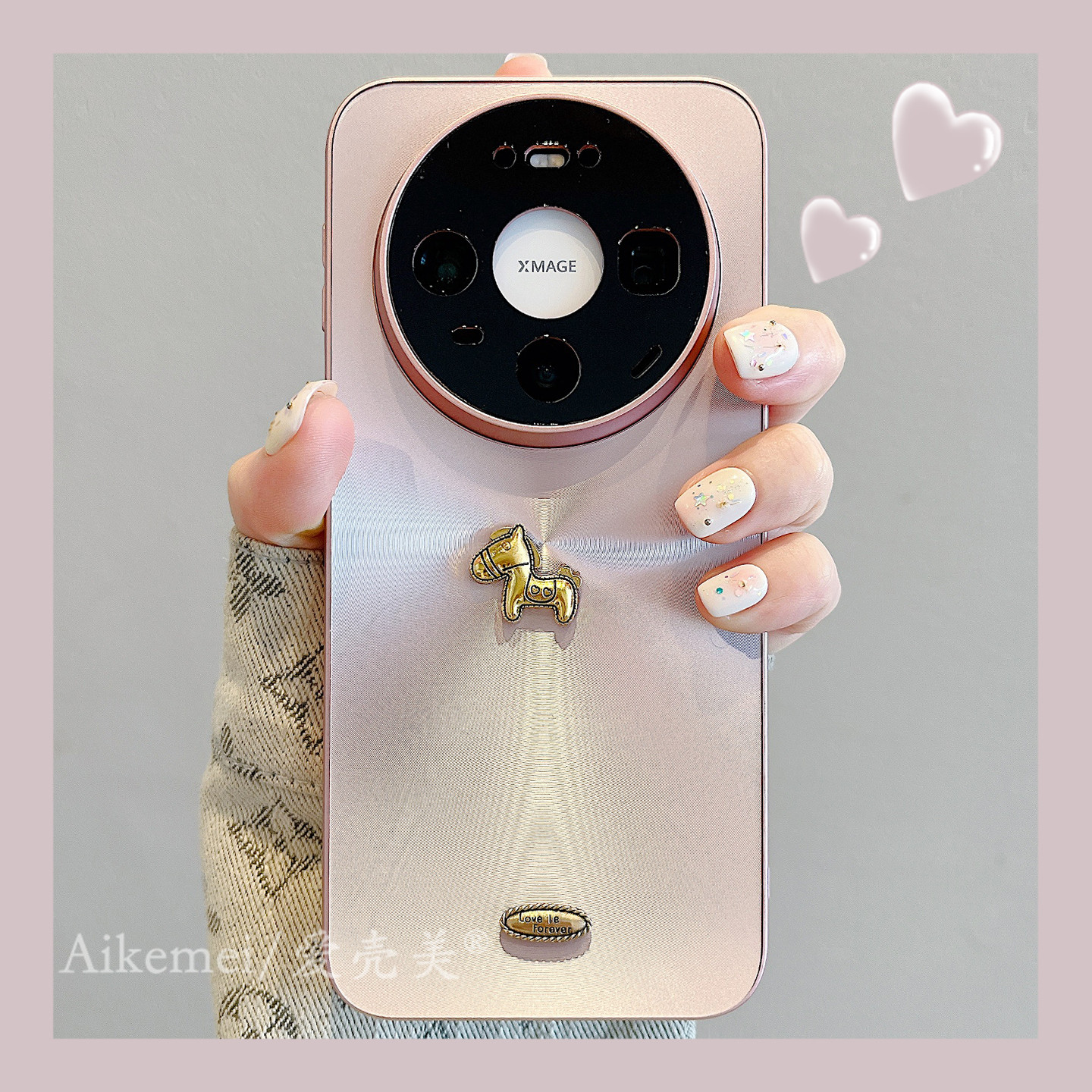 适用华为mate80promax手机壳创意3D极光立体小金马mate70pro磨砂防指纹Mate60pro镜头全包pura80pro+防摔男女
