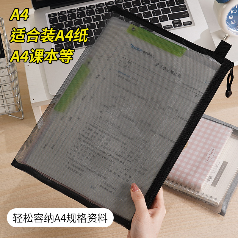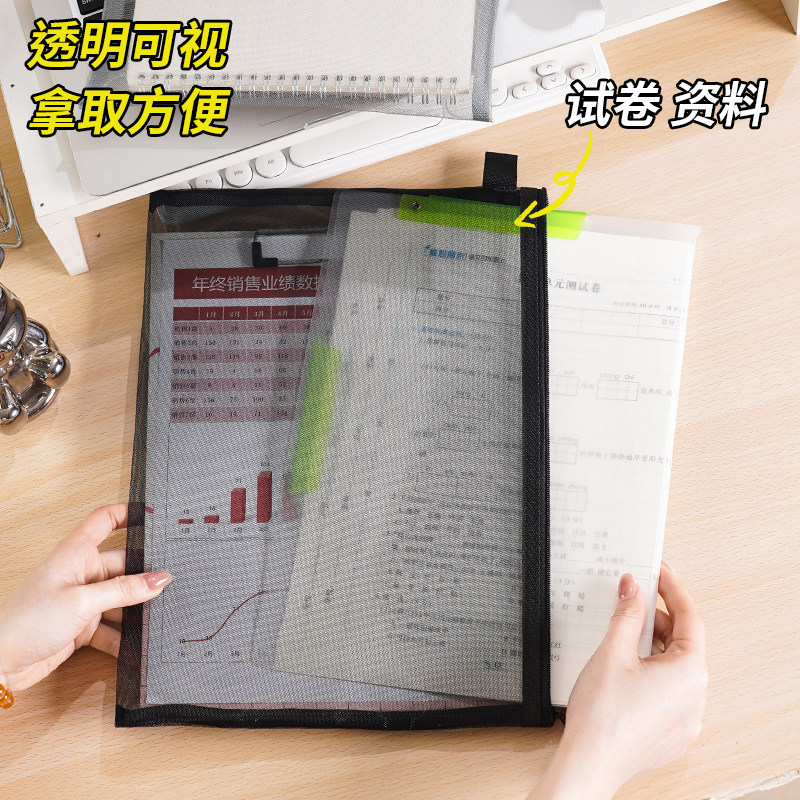 透明网纱文具袋考试专用笔袋文件袋A4试卷收纳袋便携资料袋a5装准考证袋a6零钱袋简约整理拉链袋子期中考期末
