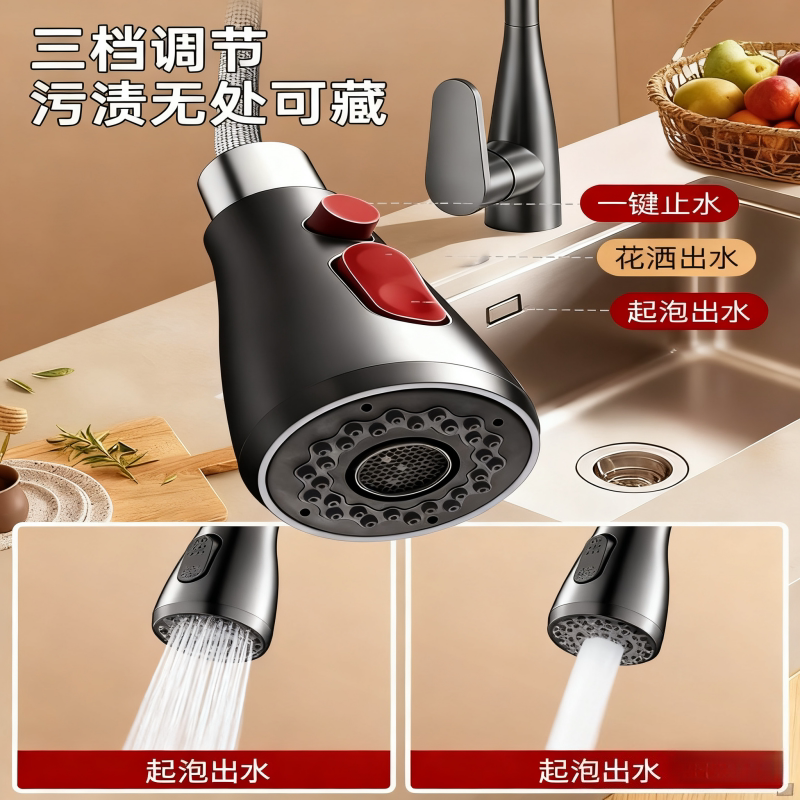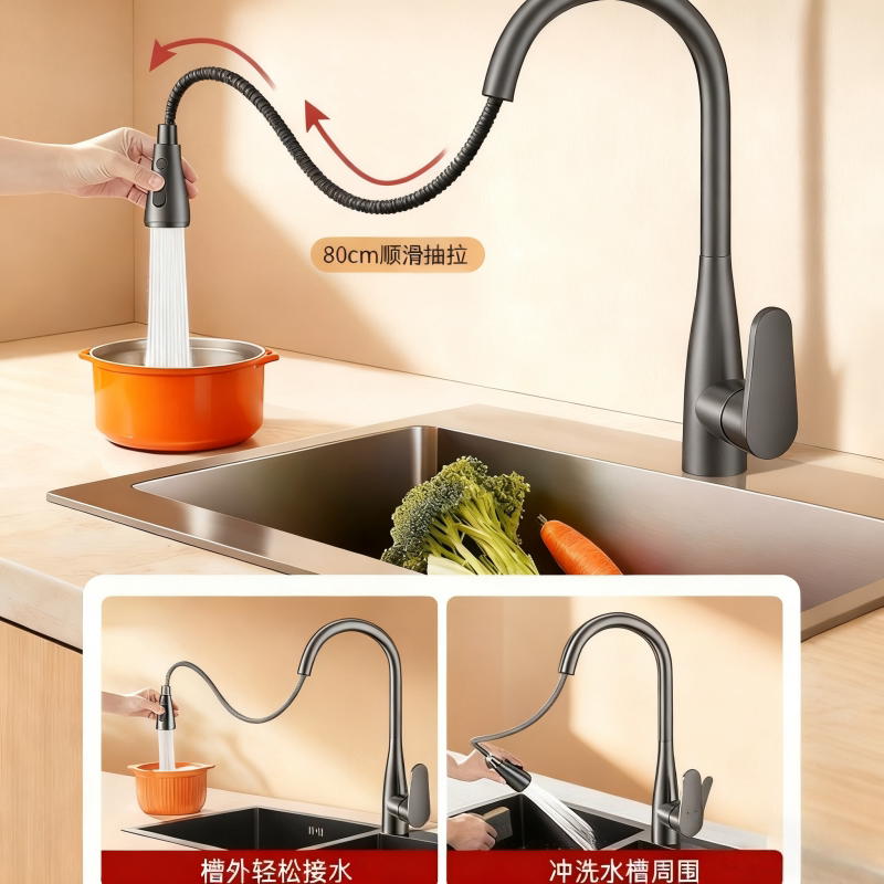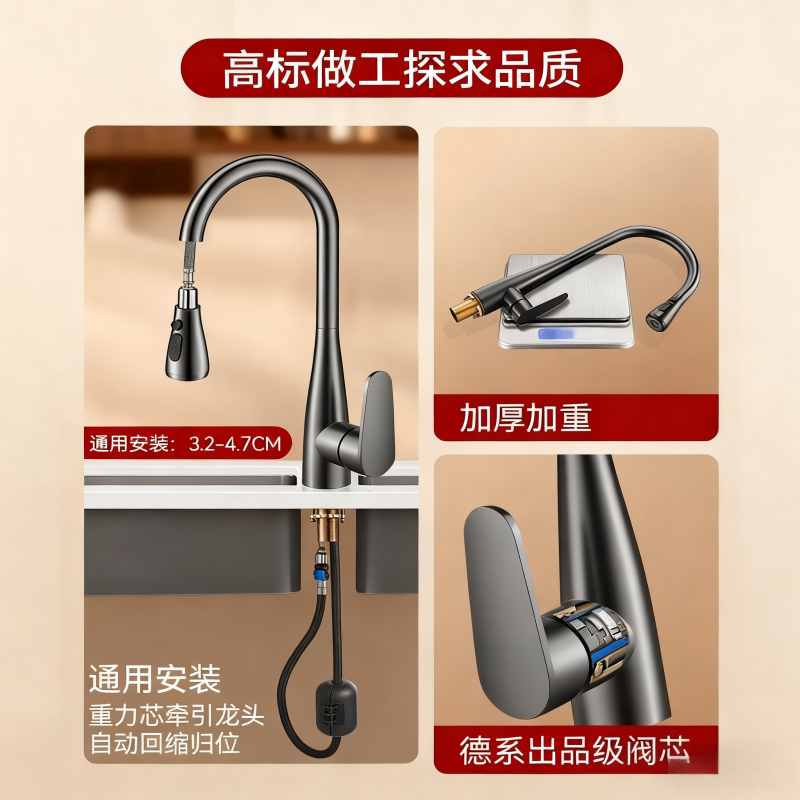 德国精铜厨房水龙头洗菜盆抽拉式伸缩洗菜池专用水槽冷热防溅家装