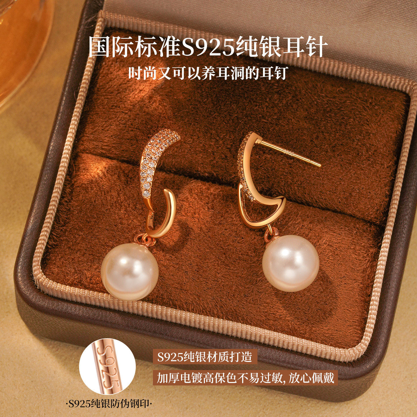 施家珍珠耳钉轻奢高级感女养耳洞耳环2025年新款爆款气质时尚耳饰