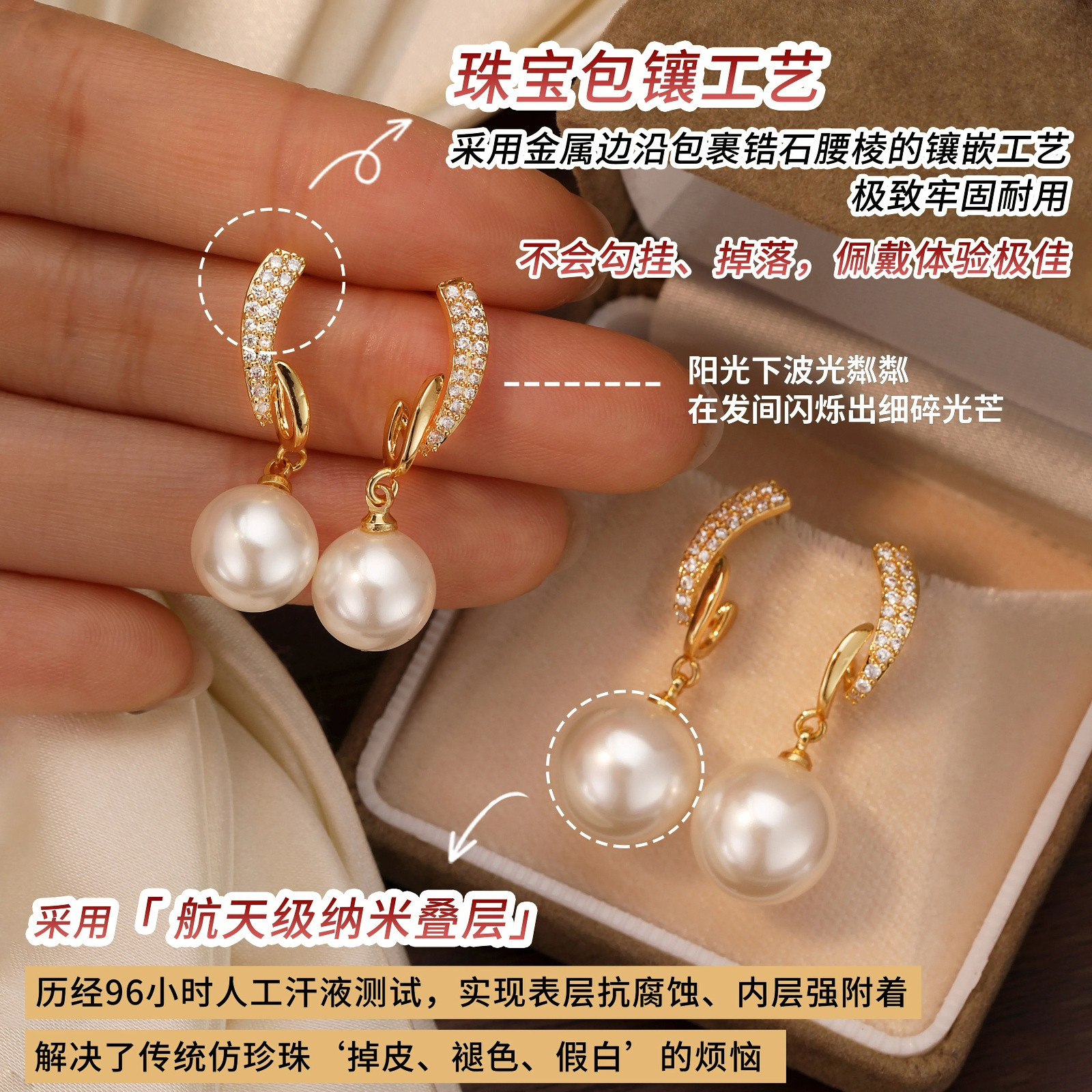 S925银针刘亦菲同款施家仿珍珠耳钉女2026新款爆款耳坠无耳洞耳夹