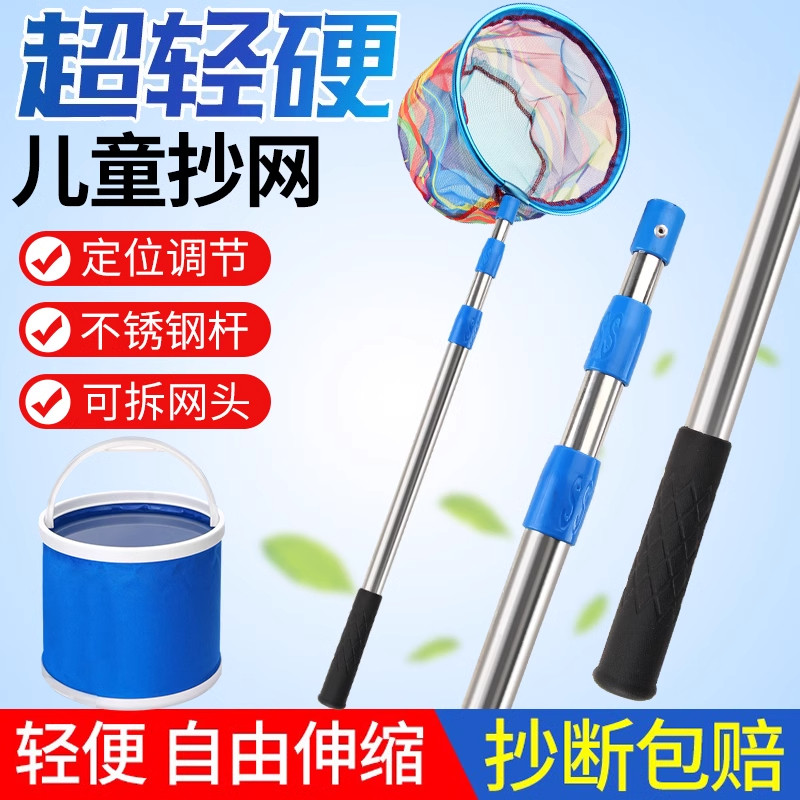 儿童抄网超轻伸缩捞鱼网抄网杆小孩捞鱼小鱼小虾加厚钓鱼全套网兜