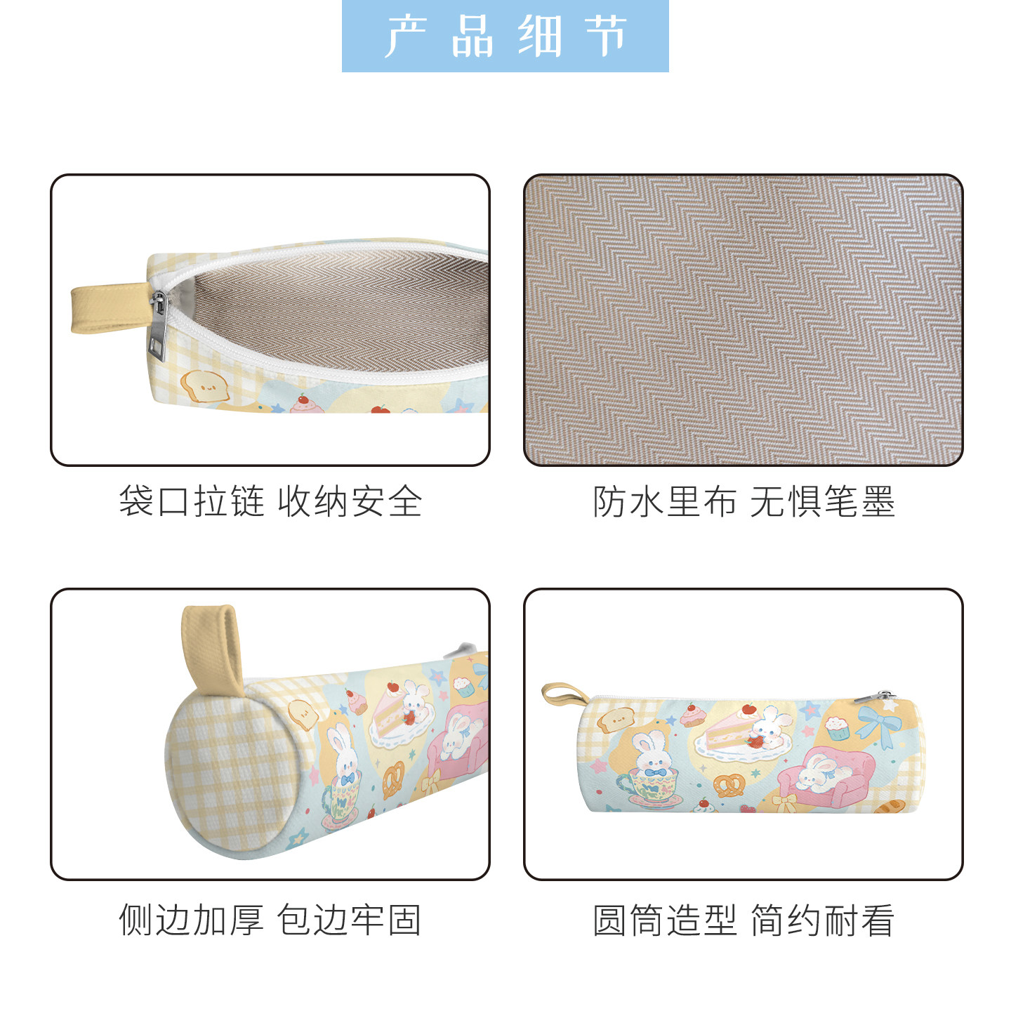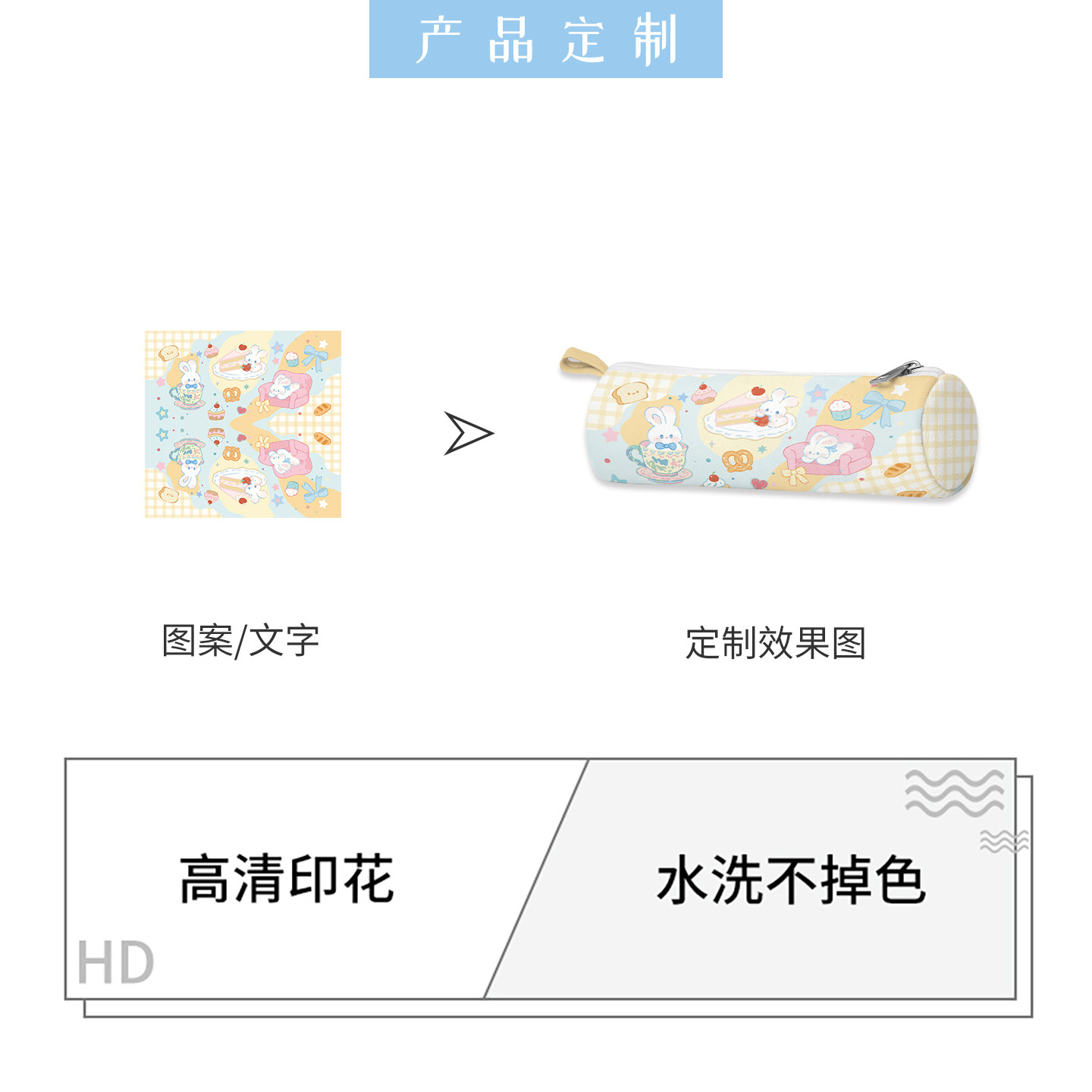 印你所想原创兔兔甜品屋笔袋幼儿园一年级初中生小学生儿童格纹帆布高颜值ins风可爱小众不撞款女孩文具盒