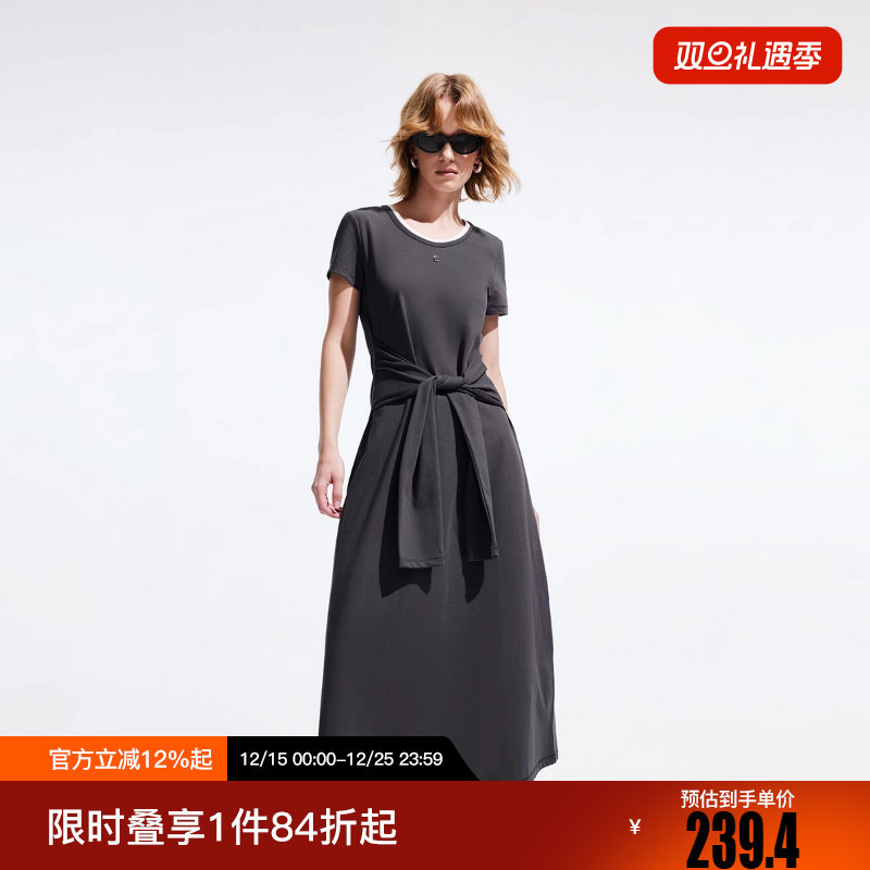 森马连衣裙女收腰T恤裙小心机夏季2025新款绣花圆领短裙简约休闲