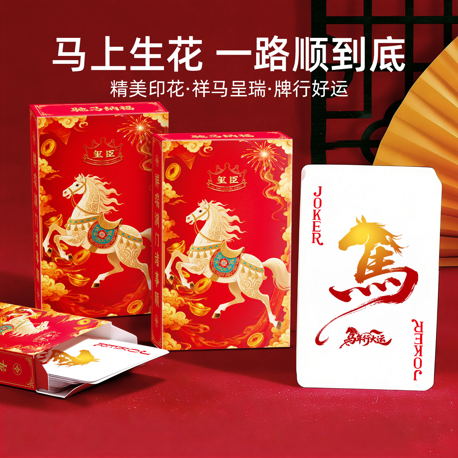 掼蛋专用马年扑克牌春节限定烫金马到成功四色家庭娱乐必备朴克牌