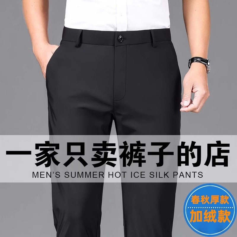 春秋男士休闲裤宽松直筒长裤冬季加绒保暖男裤高弹力商务西裤薄款
