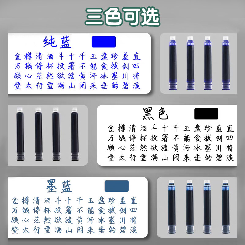 得力钢笔速干墨囊3.4口径可擦纯蓝墨蓝黑色