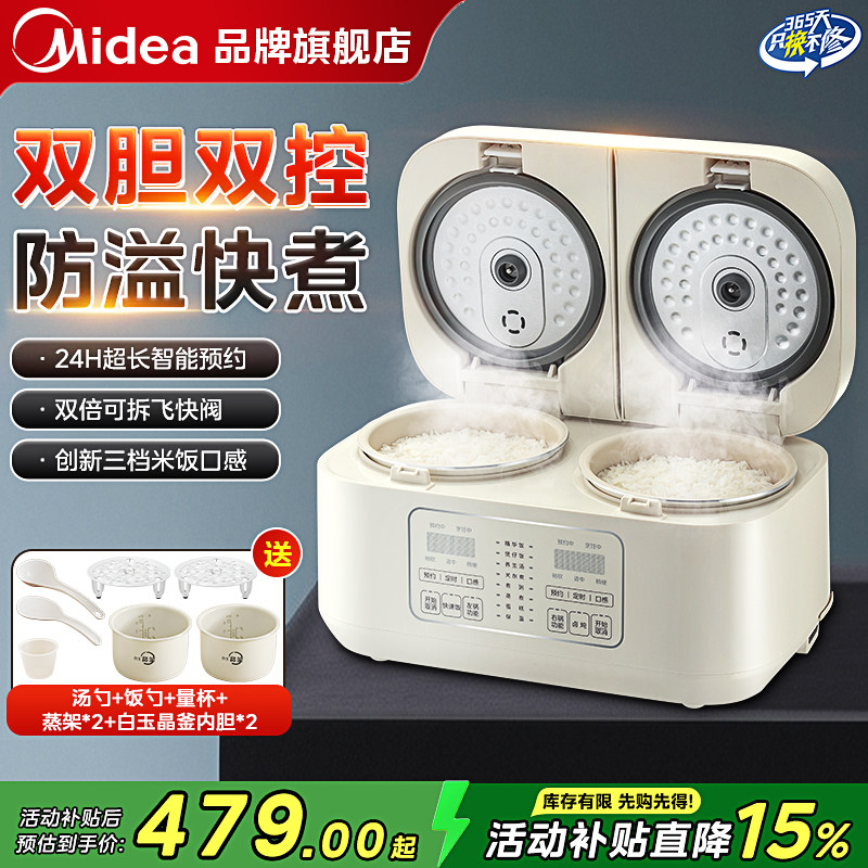 美的双胆电饭煲2025新款家用小型多功能1到2人不粘内胆旗舰店正品