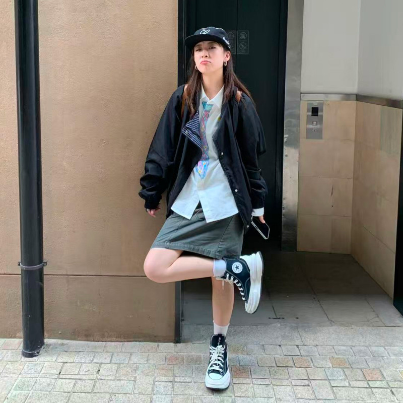 excelsior饼干鞋官方 黑色女鞋运动板鞋增高休闲鞋厚底高帮帆布鞋