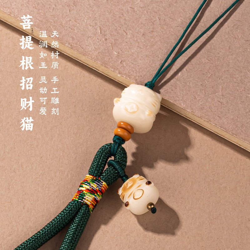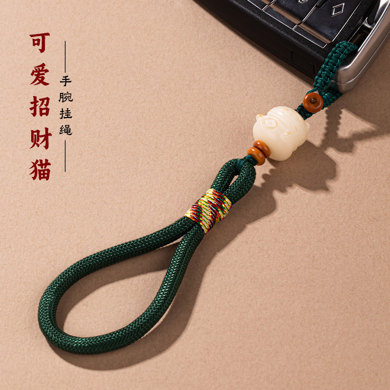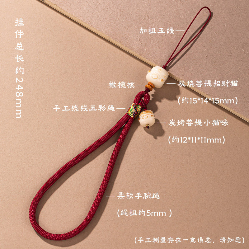 可爱菩提招财猫手机挂绳短款手腕绳挂链吊坠挂件精致U盘挂饰防丢防摔手机壳挂绳cdd相机绳子钥匙扣小挂件
