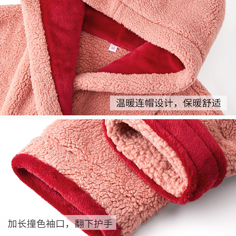 5折秒杀|北糕绒睡衣冬季加绒加厚保暖连帽家居服长款睡袍