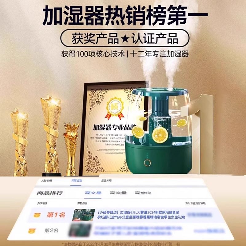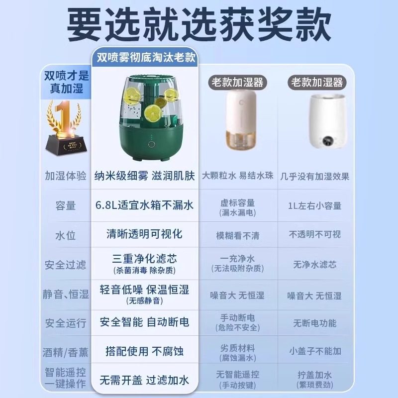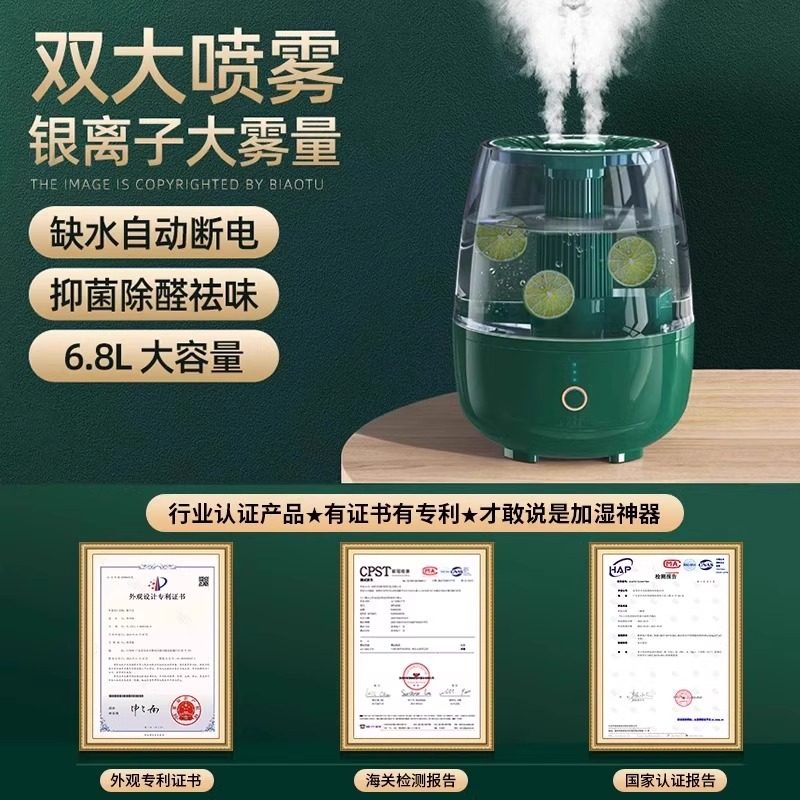 加湿器家用静音卧室客厅大喷雾6.8L大容量孕妇婴儿2025新款夏天空调房专用室内空气大雾量办公室桌面宿舍学生