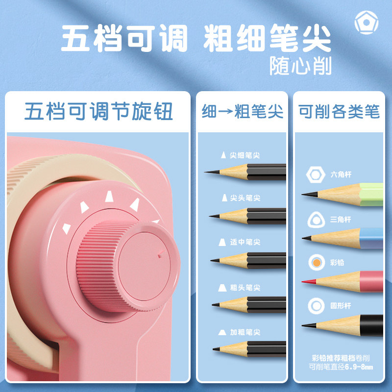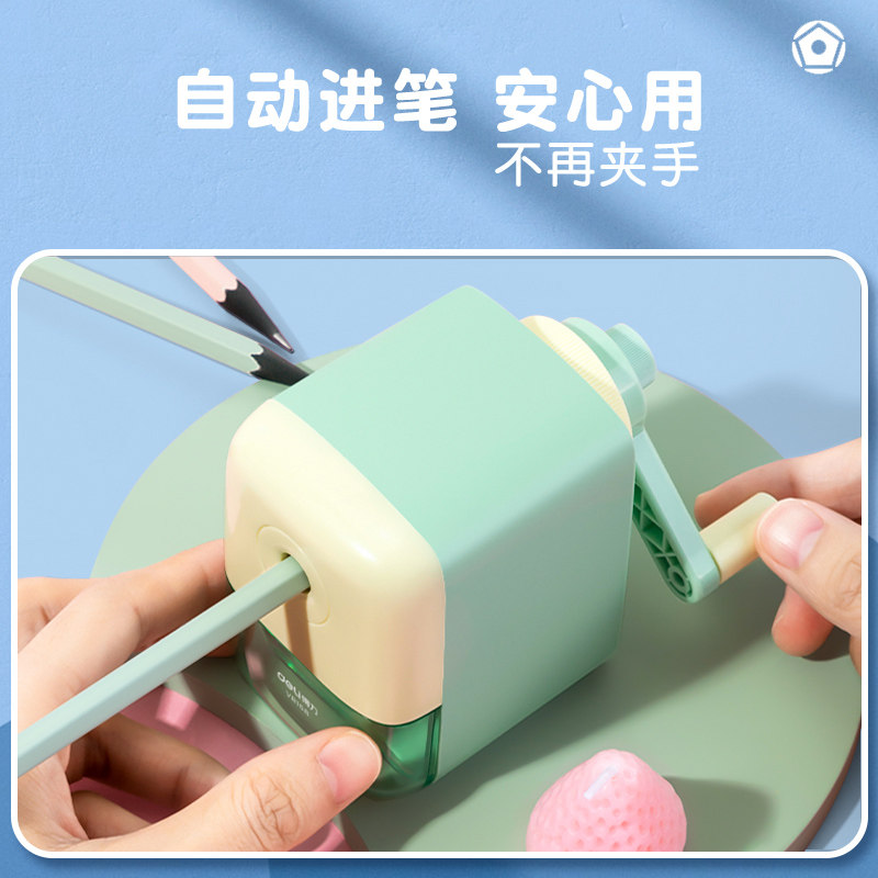 得力手摇卷笔刀粗细可调小学生转笔刀专用削笔刀儿童铅笔削笔器