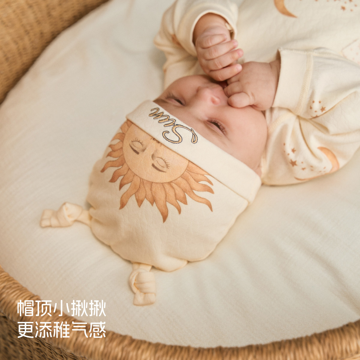 十月结晶粒粒阳光婴儿帽子a类0到3个月新生小月龄宝宝护囟门胎帽