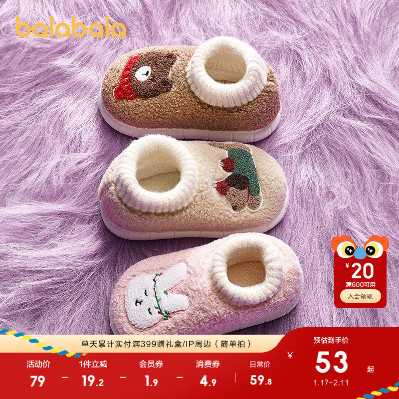 巴拉巴拉童鞋儿童拖鞋男女童2025年新款冬外穿室内加绒家居包跟鞋